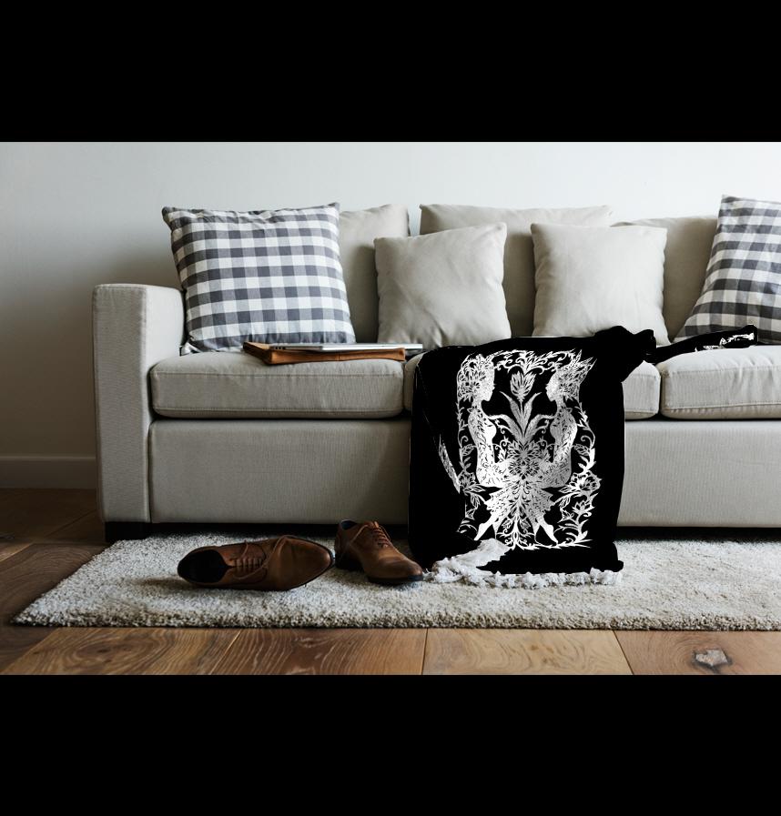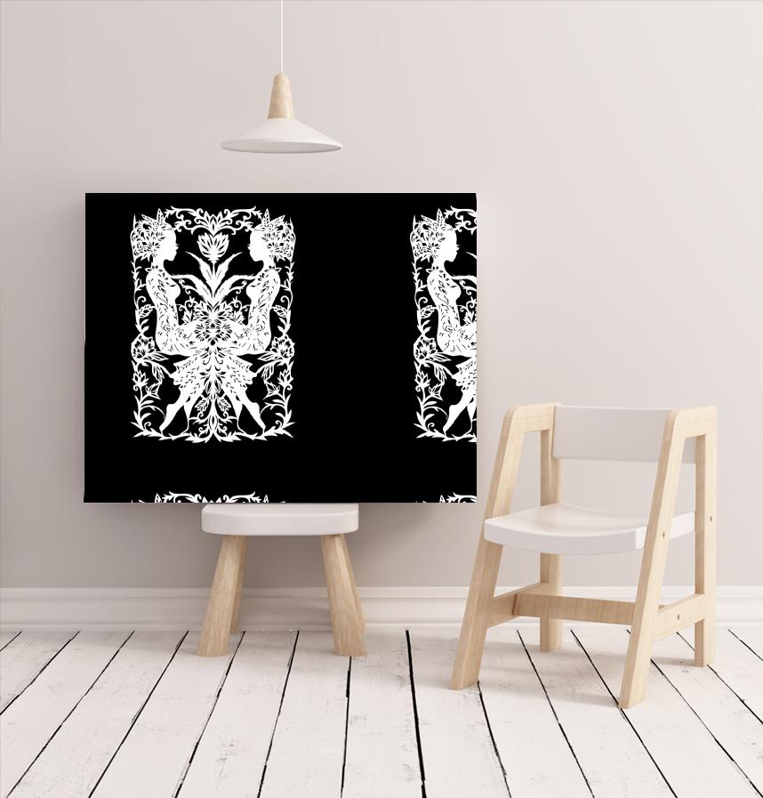 二人の向き合った貴婦人、植物に囲まれたモーチフです。