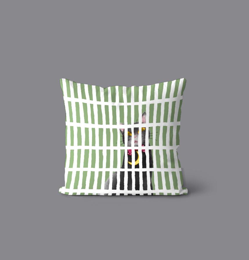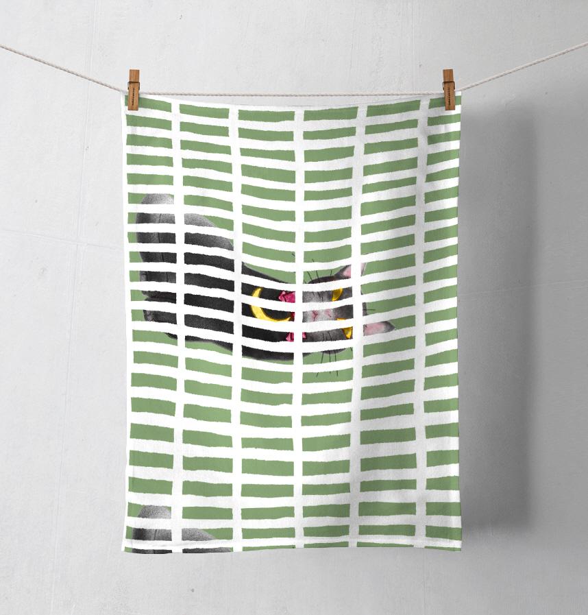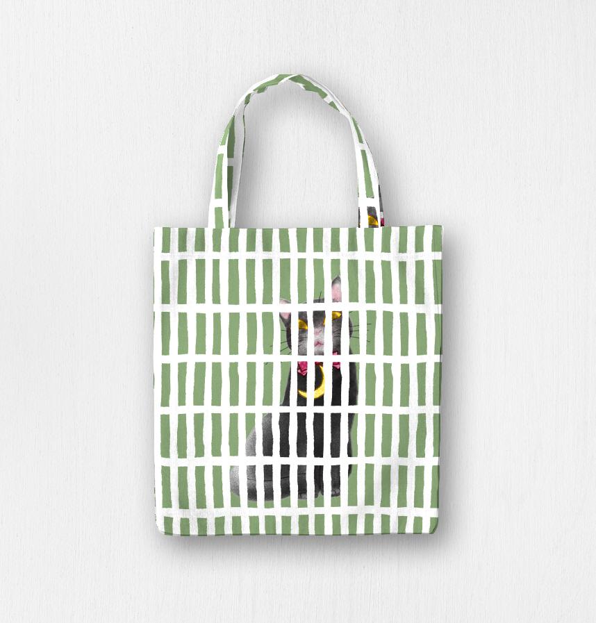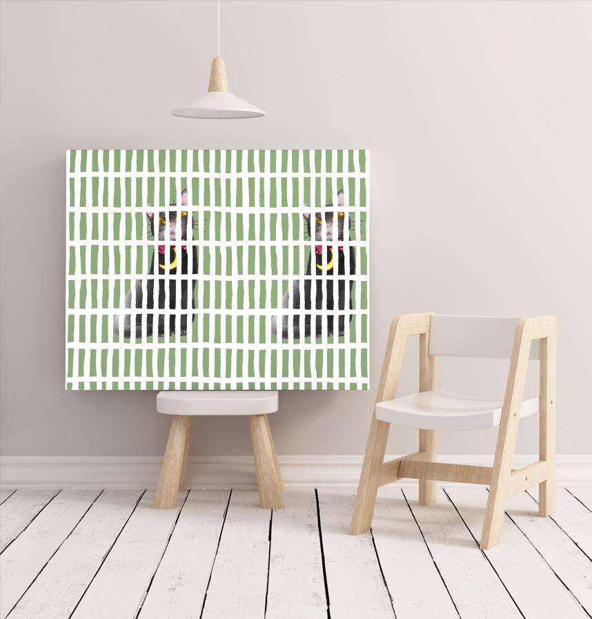 パターン名 黒猫と三日月 北欧風格子柄 緑x白