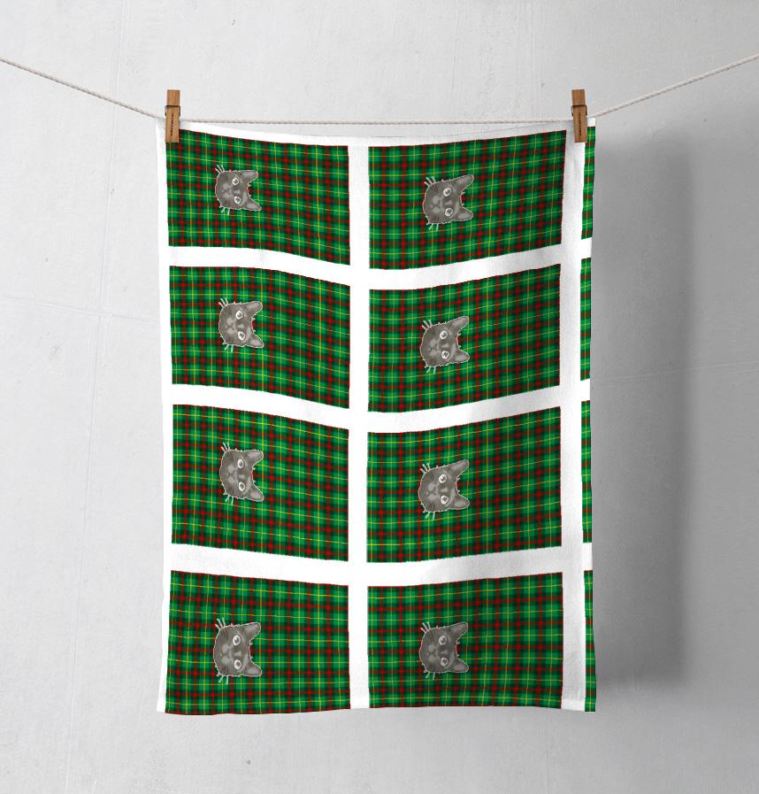 パターン名 どこでもポケット 黒猫 クリスマスカラー・タータンチェック(緑地)