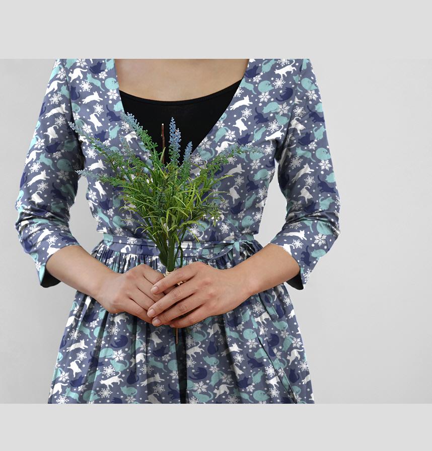 パターン説明 冬の色をイメージした猫シルエットパターンです。