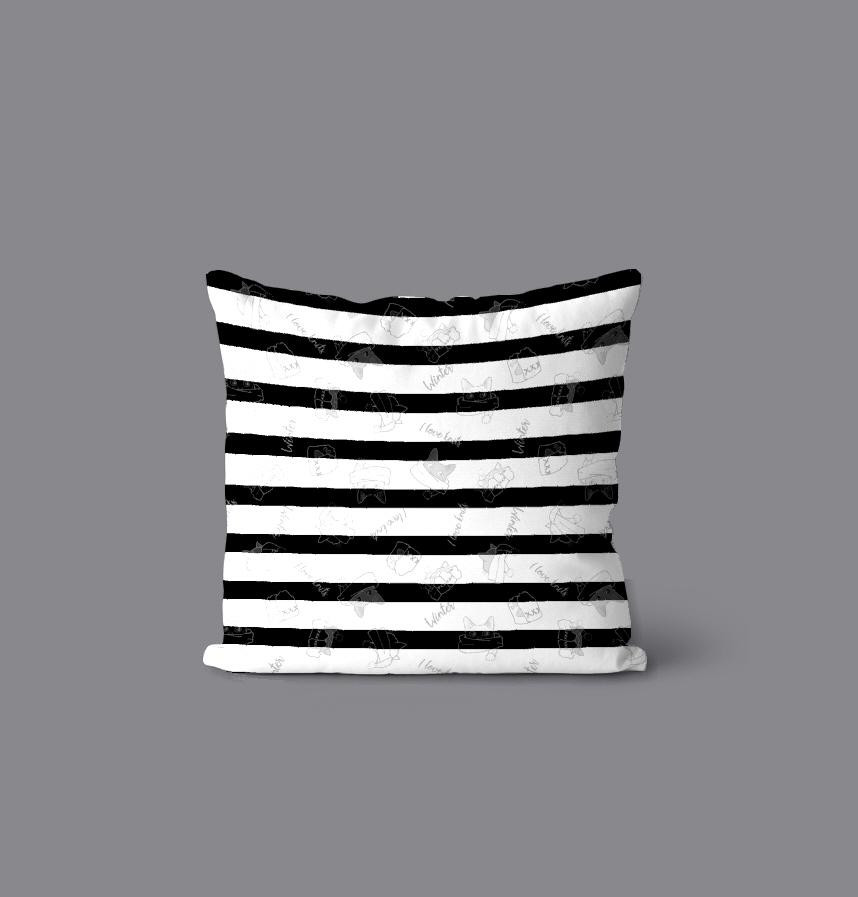 パターン名 マフラーと猫 タイポグラフィ ストライプ(黒x白)