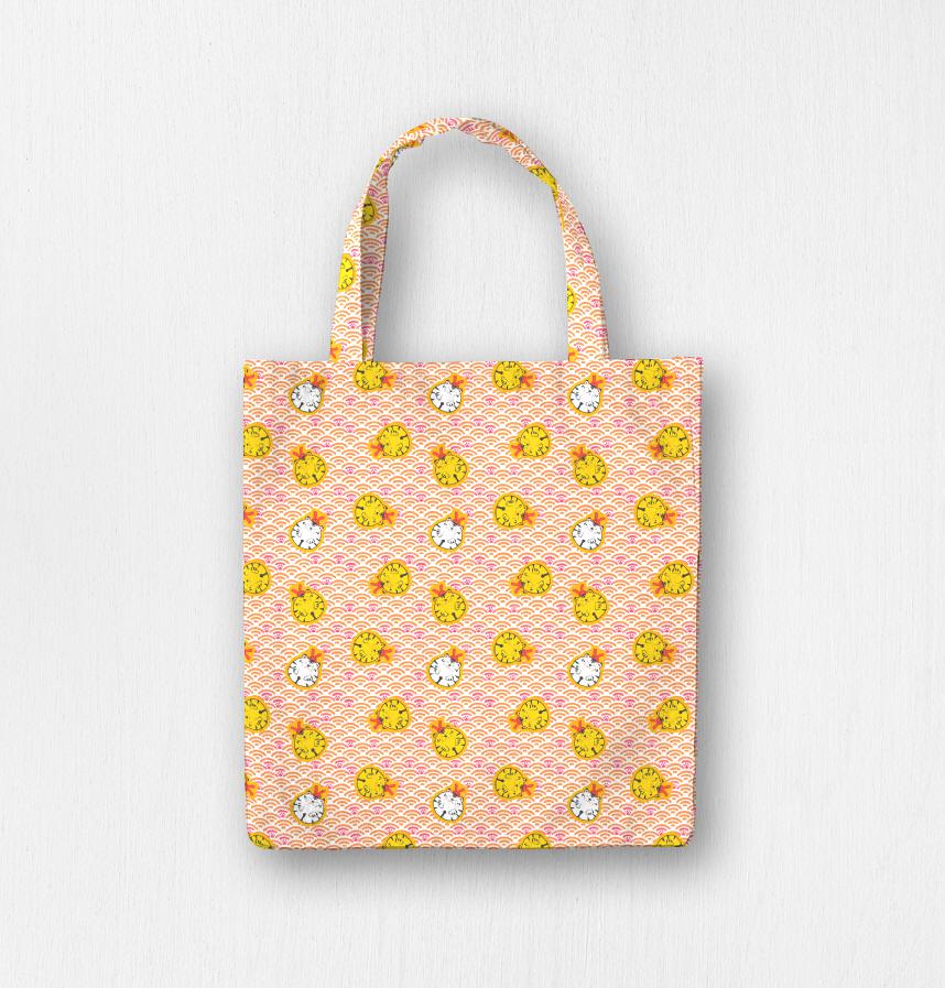 パターン説明 ランダムに散らした肉球と寅の鈴がアクセント