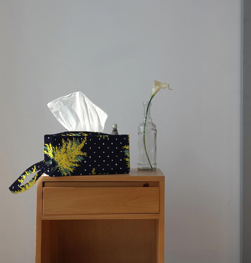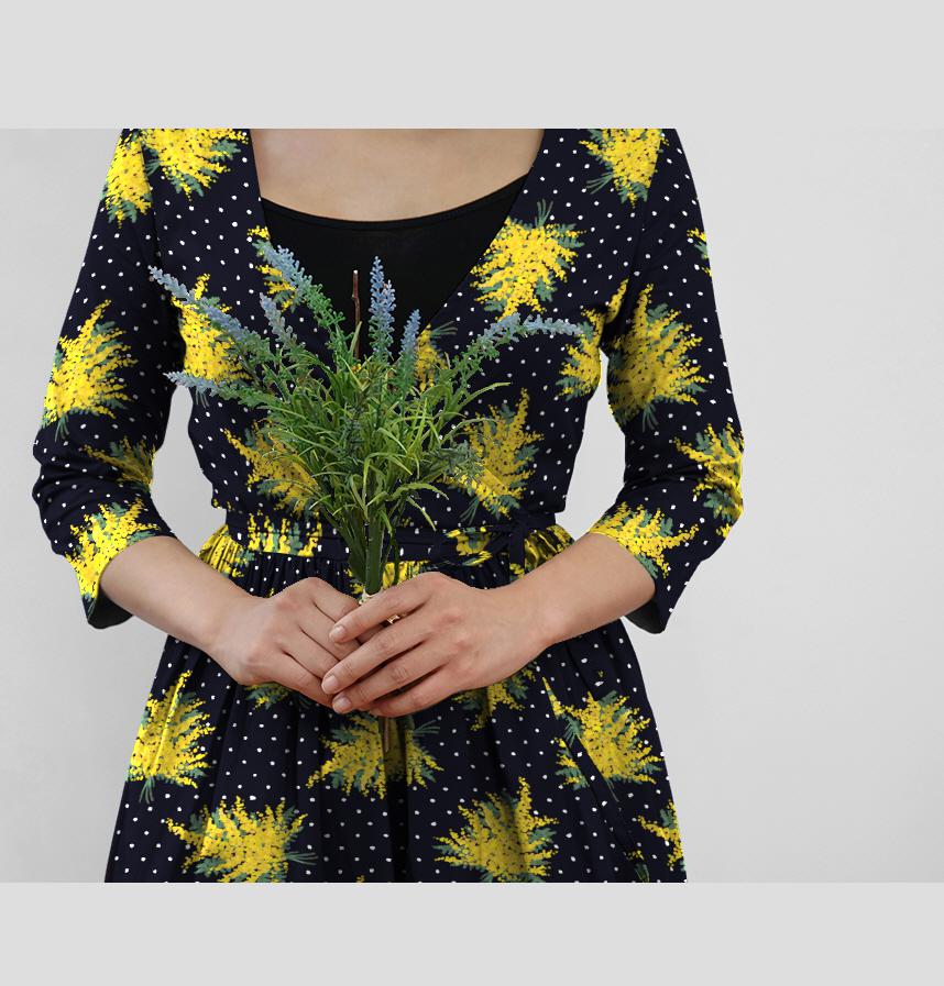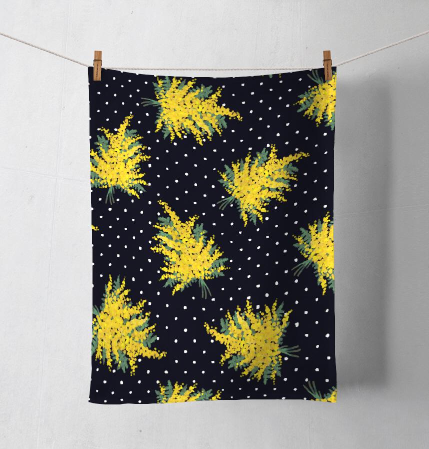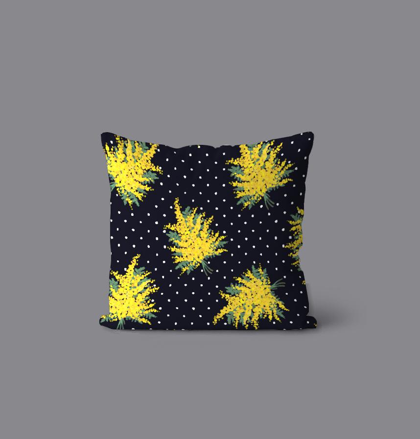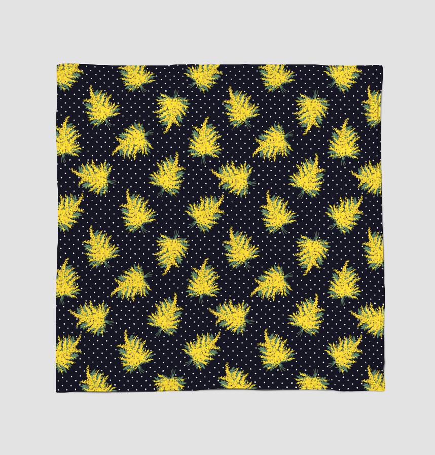 パターン説明 水彩タッチで優しい雰囲気のミモザ柄。