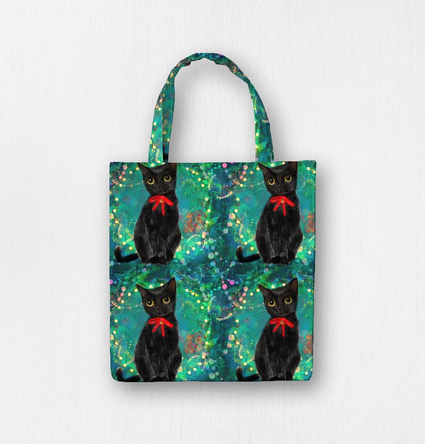 赤いリボンと鈴をつけたミステリアスな黒猫のイラスト