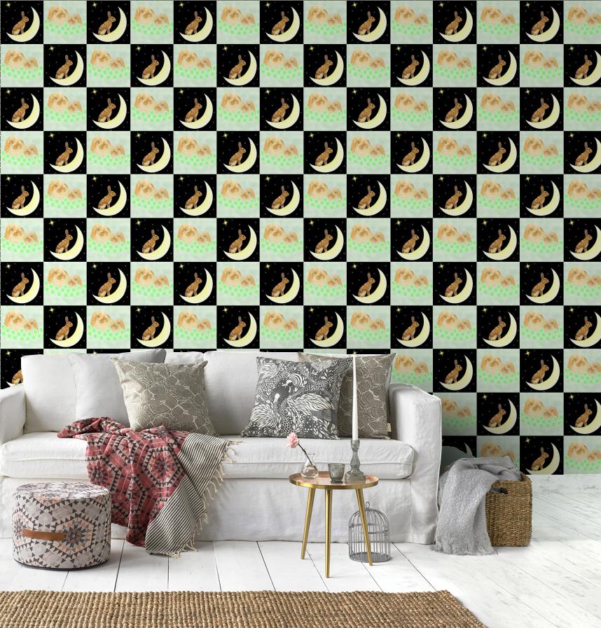 パターン名 夜の月うさぎと昼の親子うさぎ
