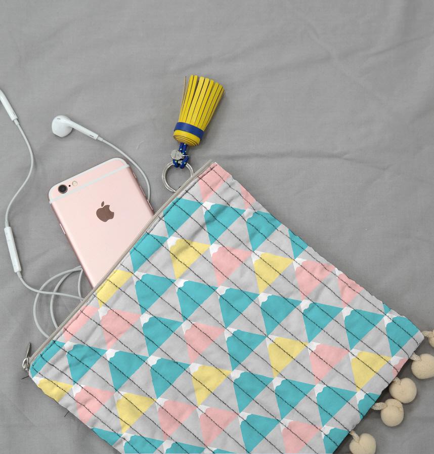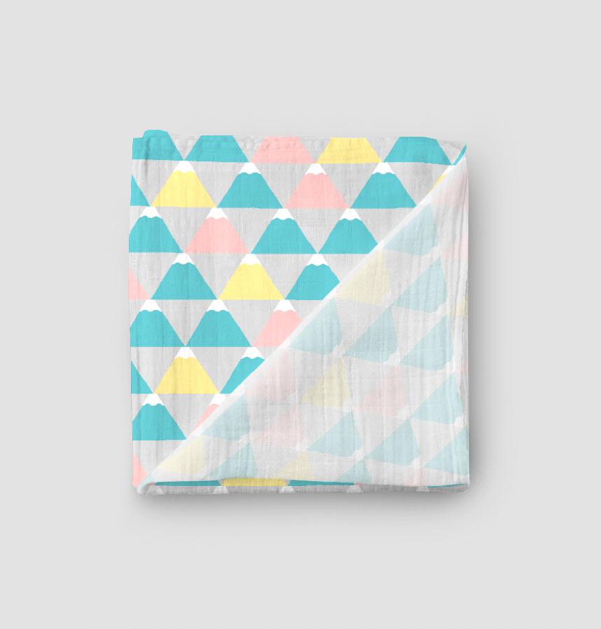 ジオメトリックな富士山柄。優しいパステルカラー。