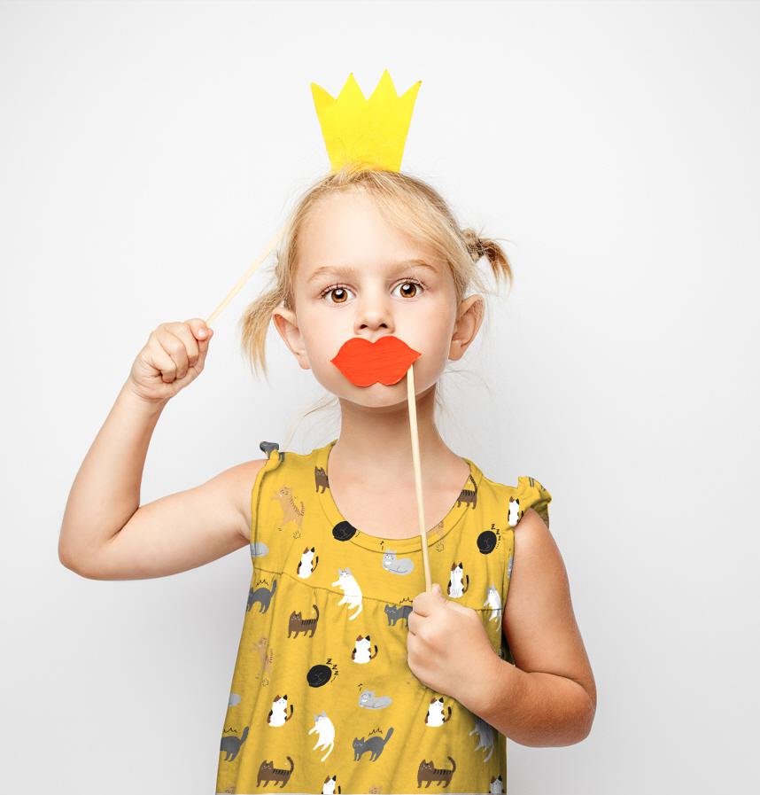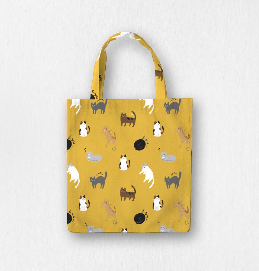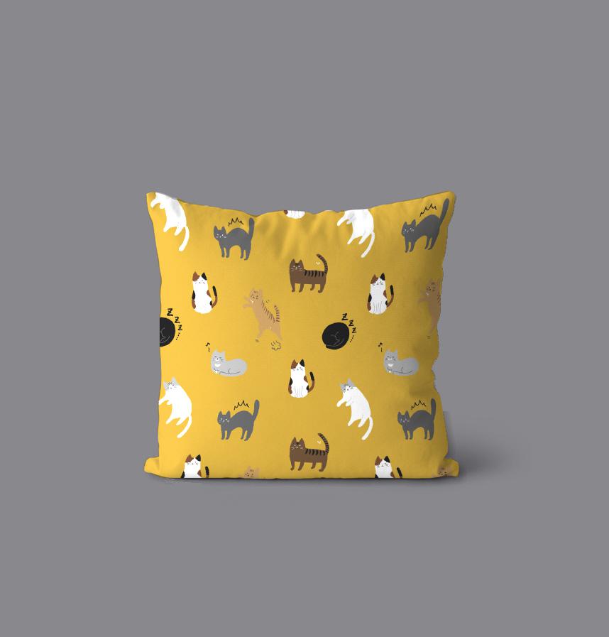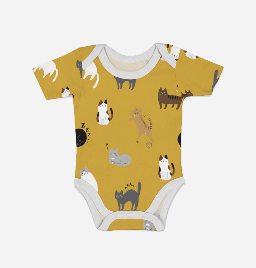 パターン名 ゆるかわいいネコ柄/マスタード