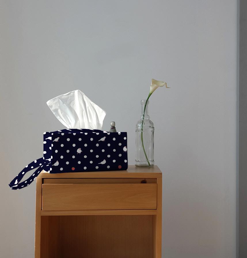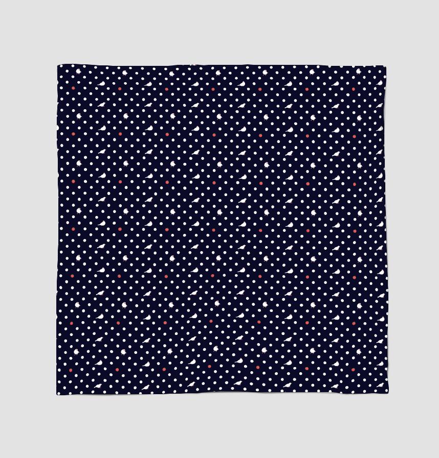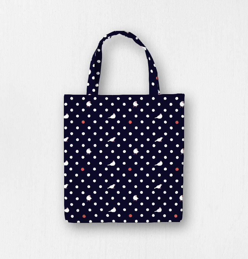 文鳥さんの可愛いポーズを小さく散りばめました。サムネイルのパターン1セットで16.87cm*16.87cmサイズです。水玉と文鳥が映えるように背景は落ち着いたネイビーにしました。