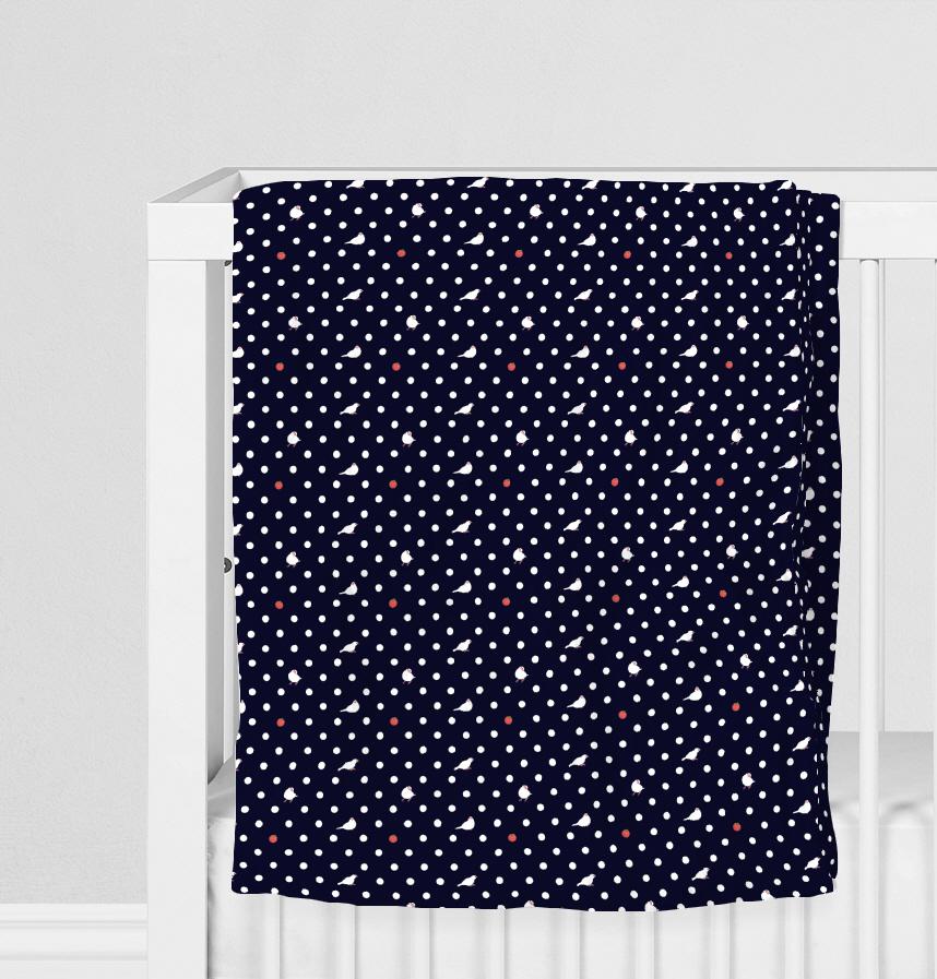 パターン名 白文鳥とドット(背景暗めのネイビー):サムネイルのパターンサイズ:16.87cm*16.87cm