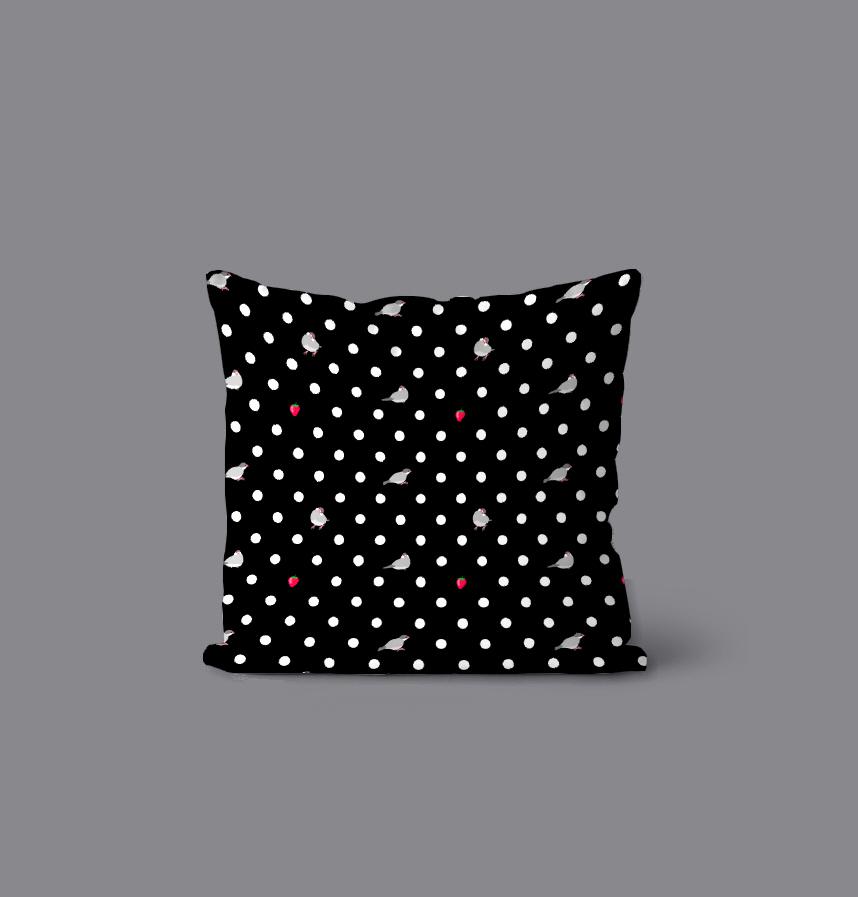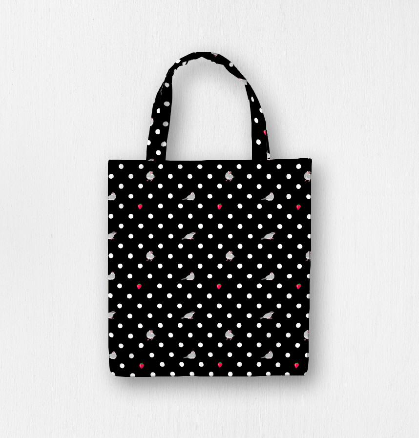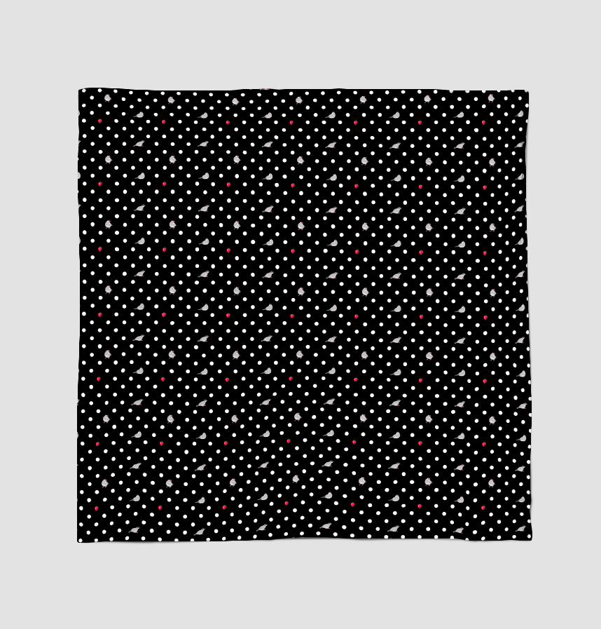 文鳥さんの可愛いポーズを小さく散りばめました。サムネイルのパターン1セットで16.87cm*16.87cmサイズです。水玉と文鳥が映えるように背景は落ち着いた黒にしました。