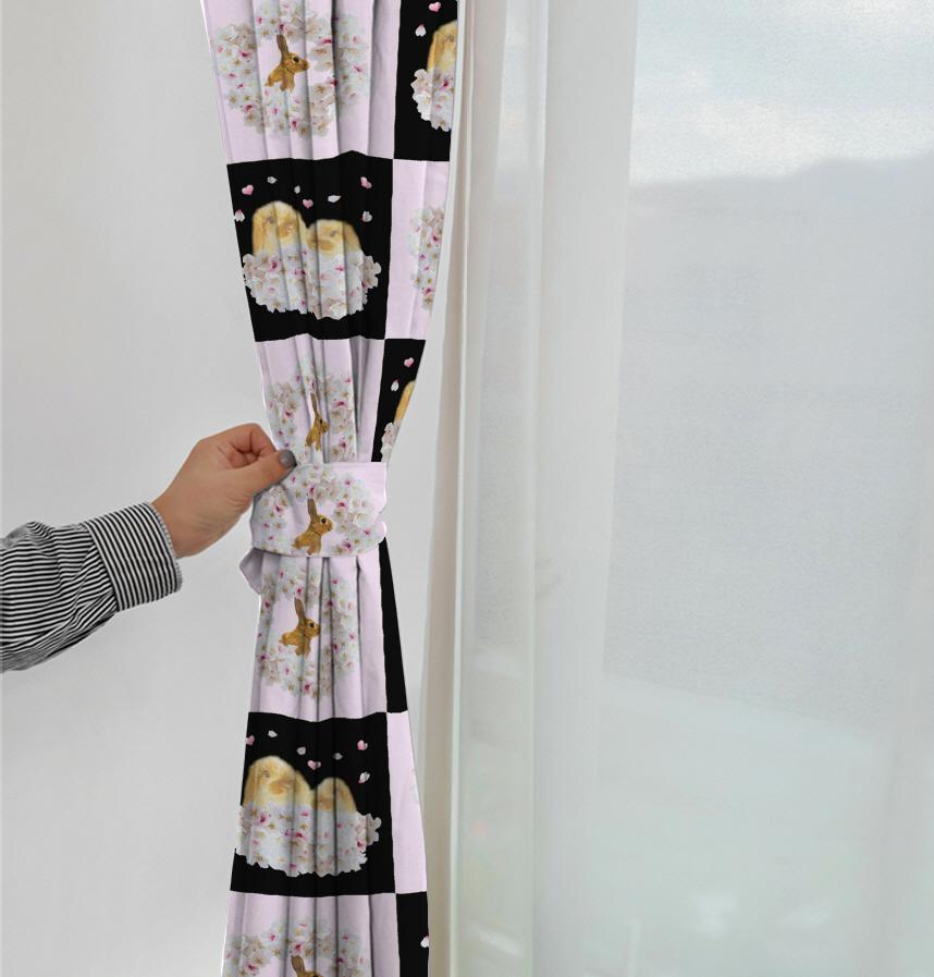 パターン説明 春をイメージした昼夜の桜とうさぎの生地です。