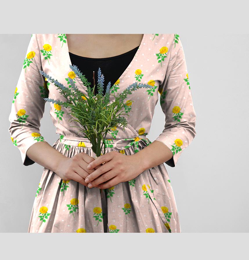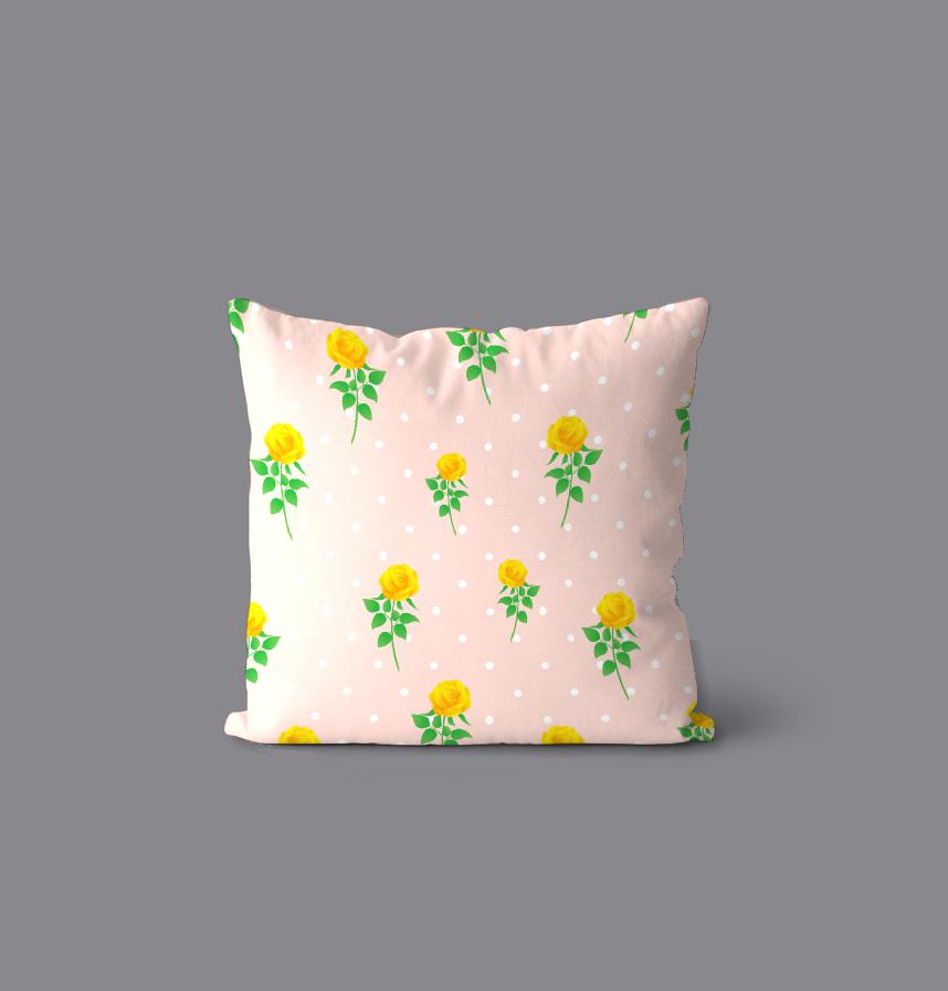 パターン名 バラの花と水玉背景(ピンク系、バライエロー)
