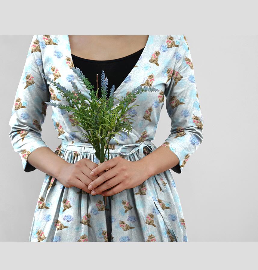 ジェントルハーマイオニーという薔薇とチンチラ猫の組合せでハンカチを作りましたが、その絵柄をもとに生地用にデザインしたものです。