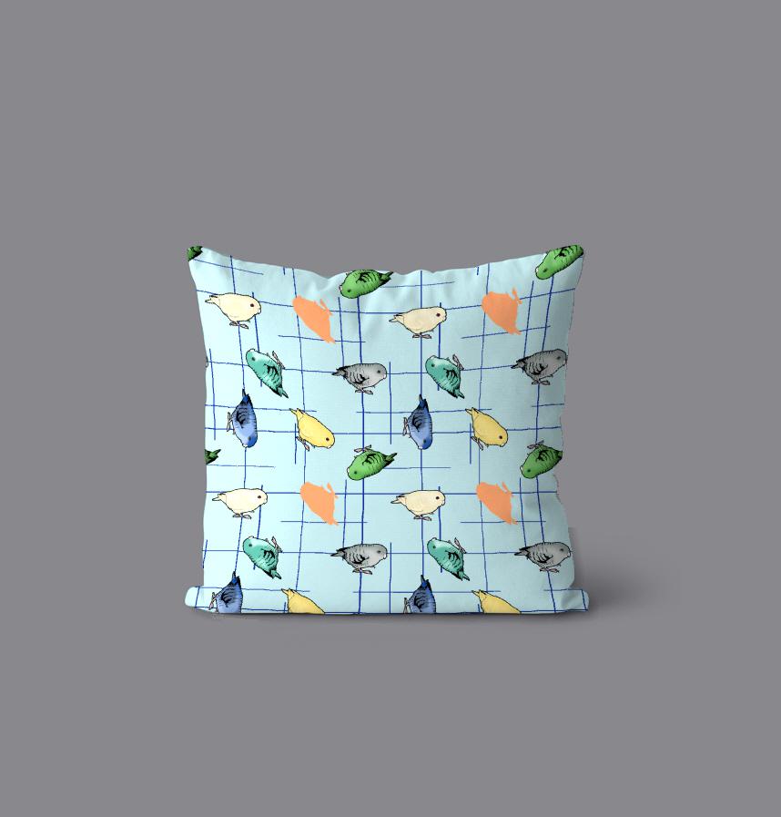 パターン説明 サザナミインコと格子柄 白藍 です。