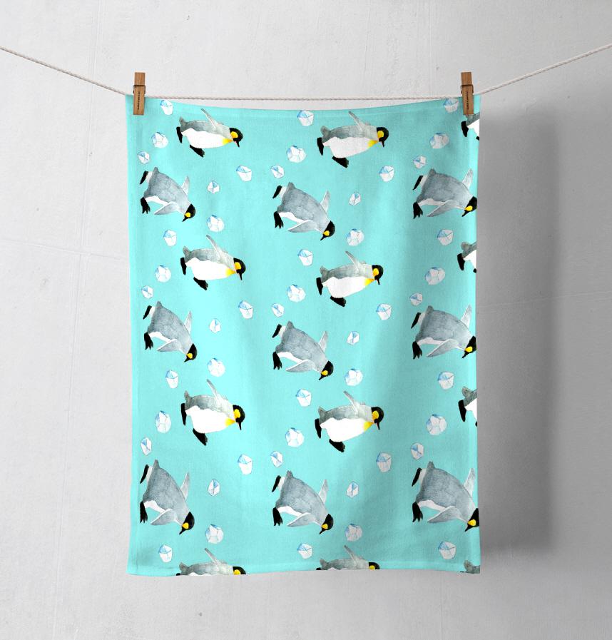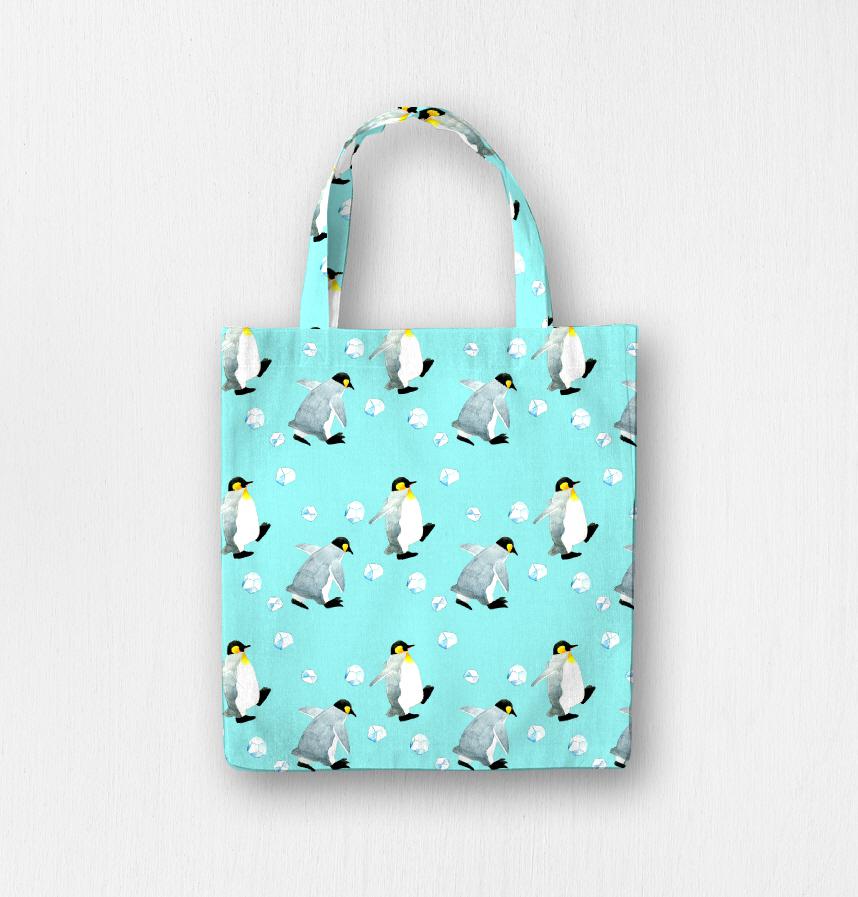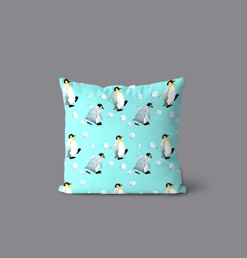 パターン説明 水彩イラストで描いた、歩くキングペンギンのパターンです。