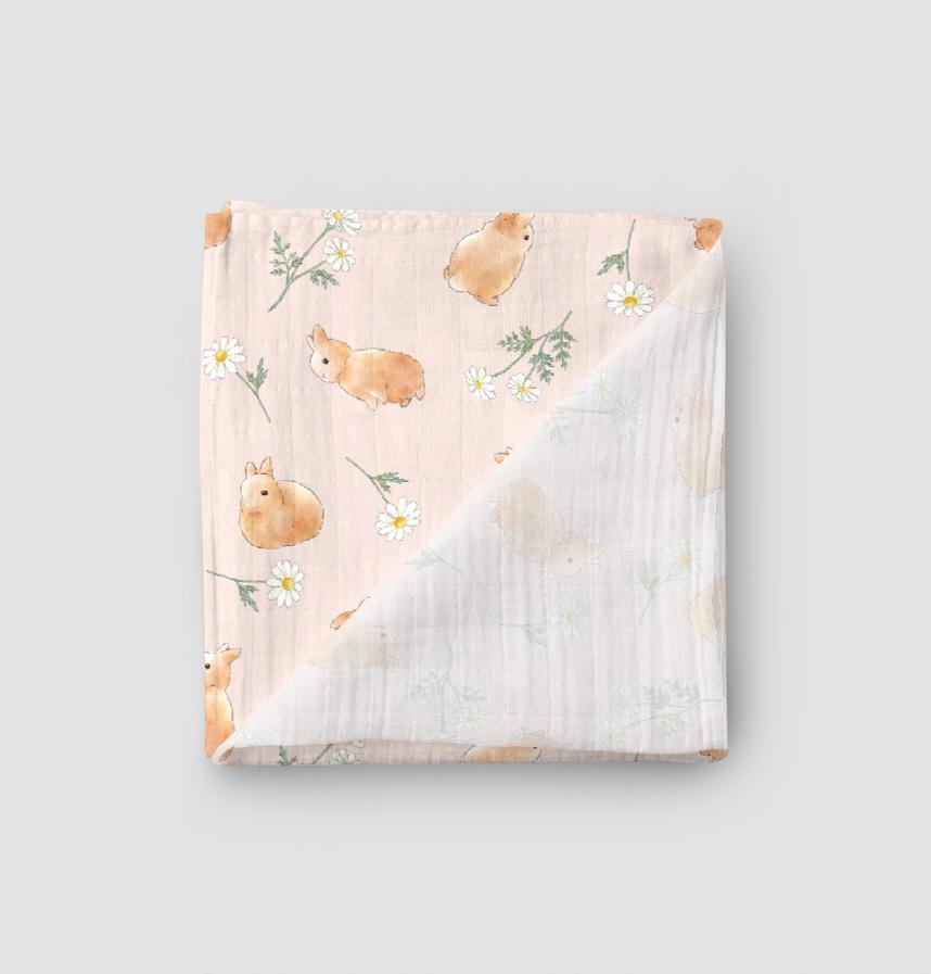 うさぎと花のデザインです。子供服にはもちろん、大人用の雑貨や小物にもいかがでしょうか。