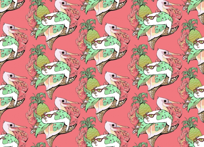 モルモットとペリカンとウツボの夏っぽいイラストです