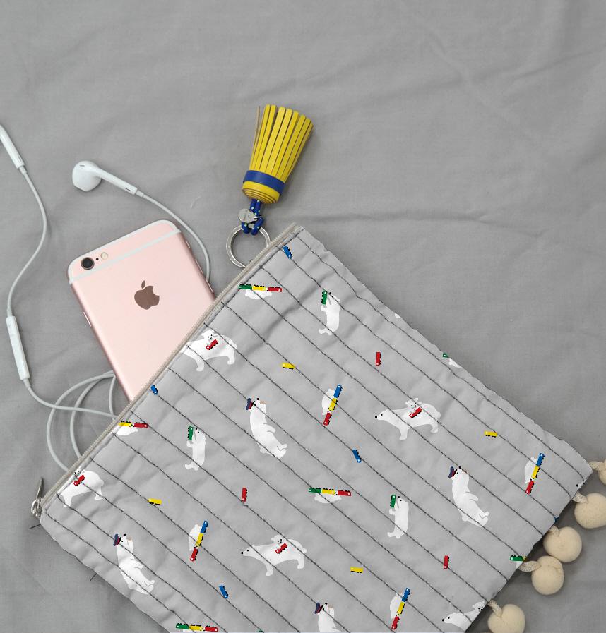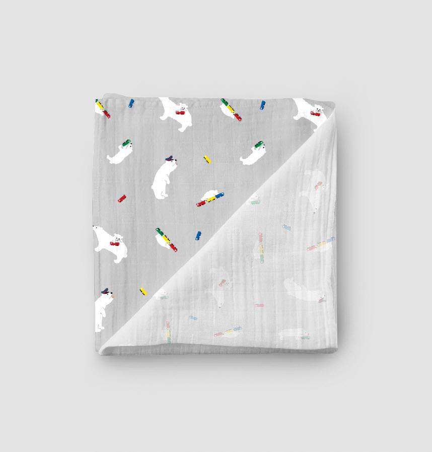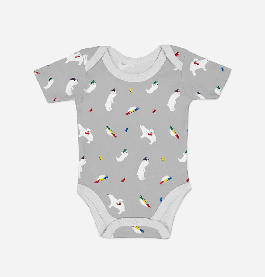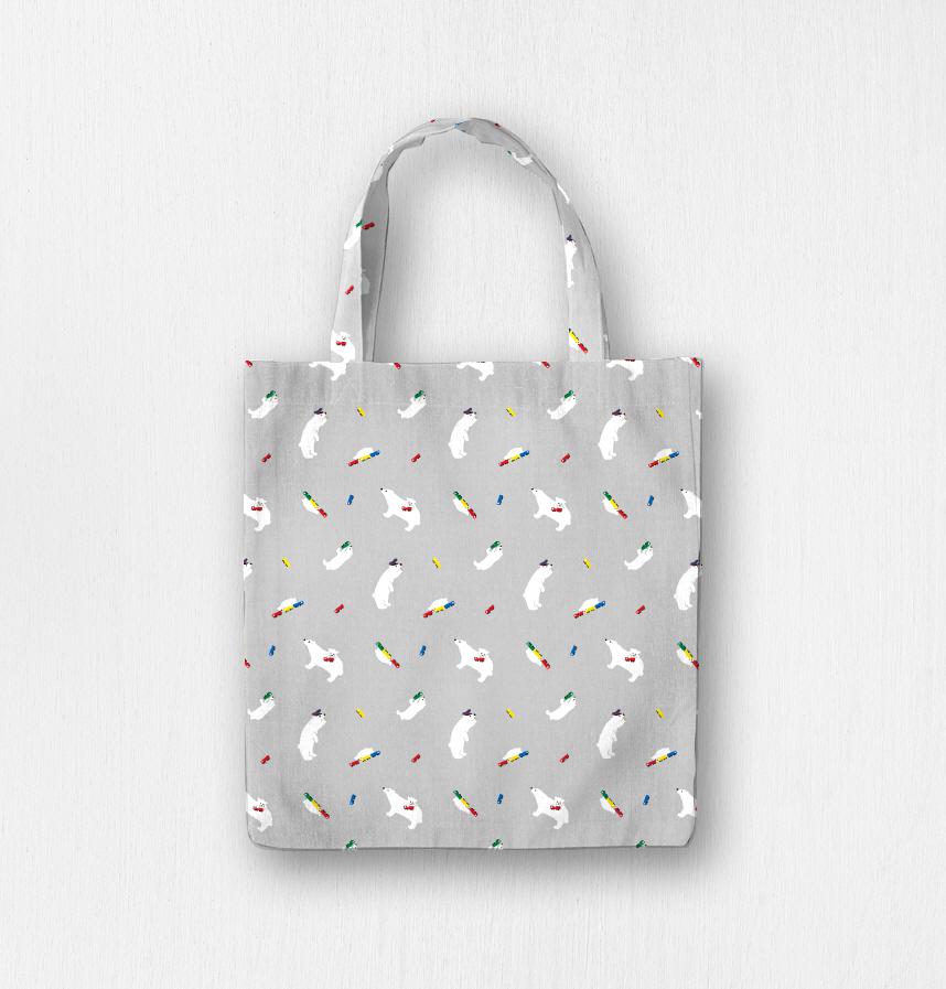 パターン名 白クマと電車 散らし グレー