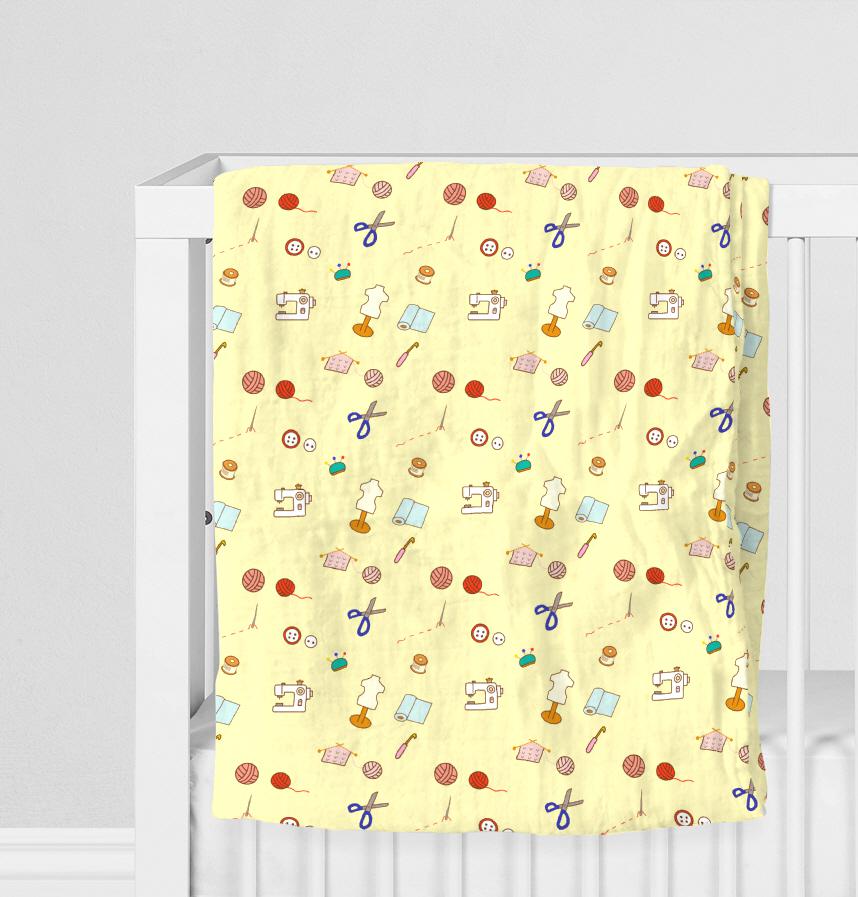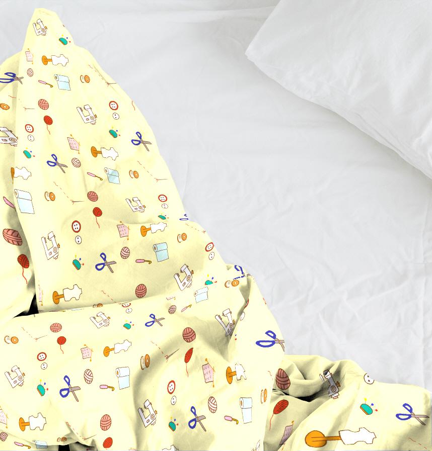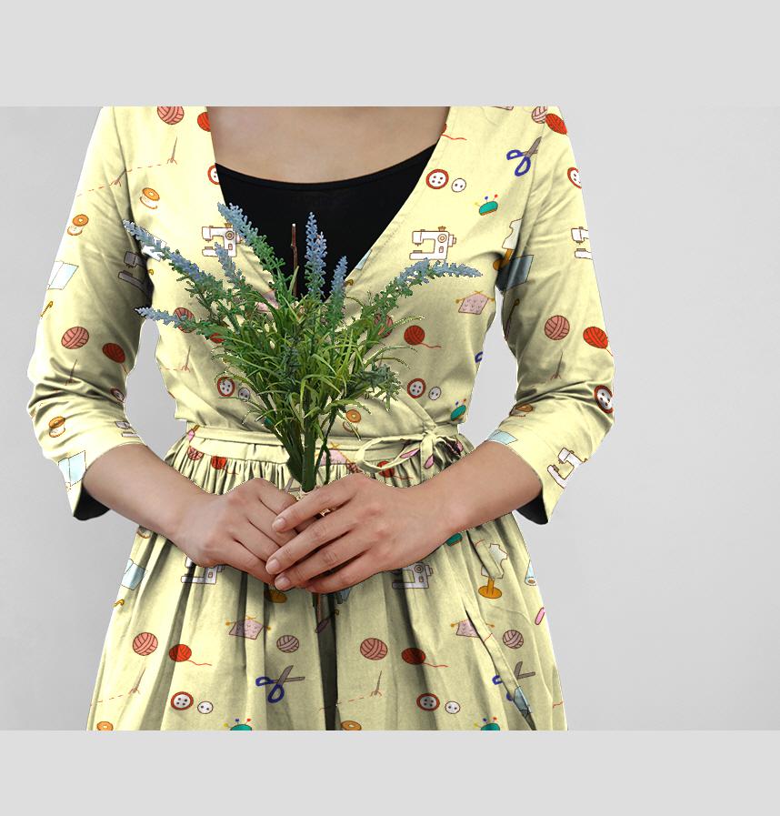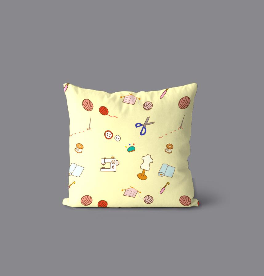 ボタンや糸、ハサミ編み物や裁縫に使う道具をデザインしました。