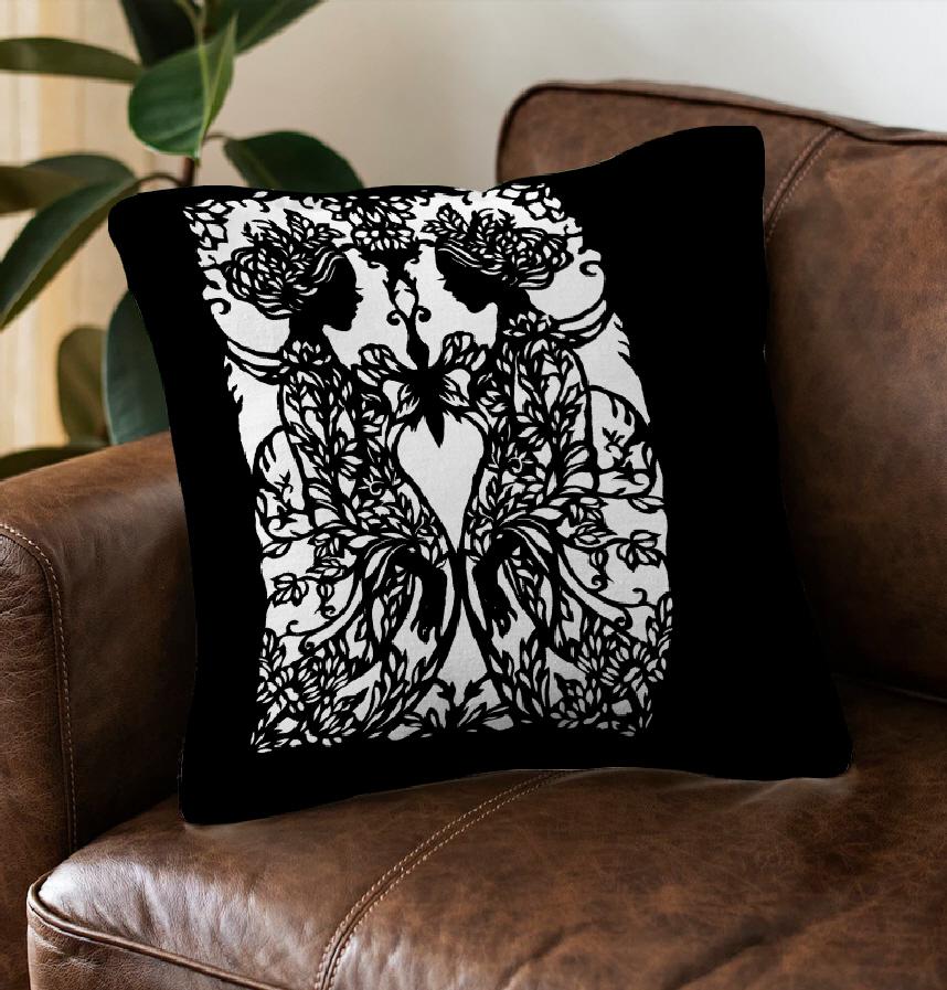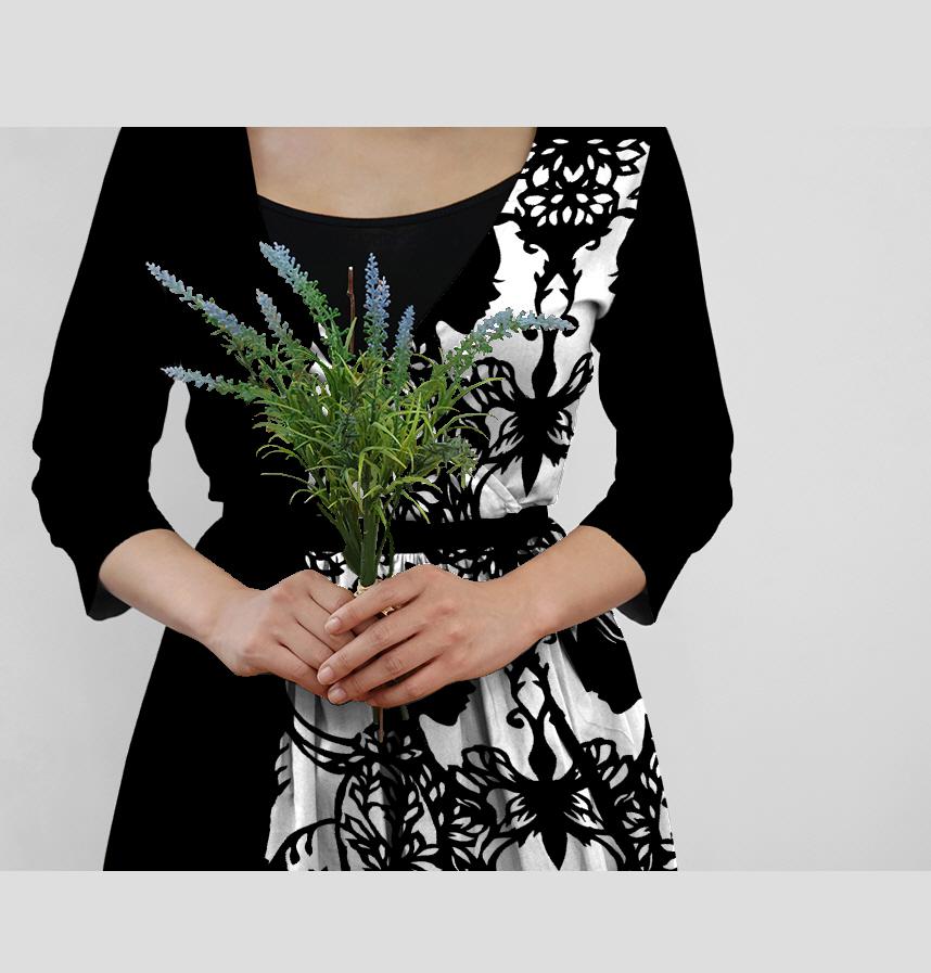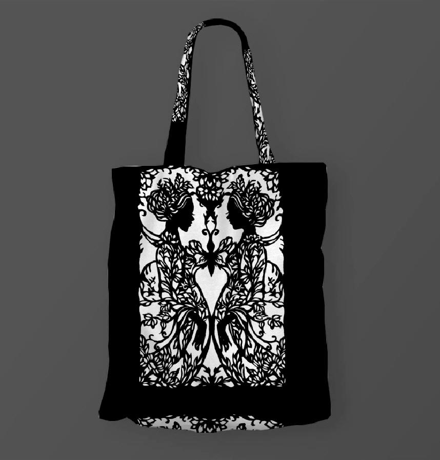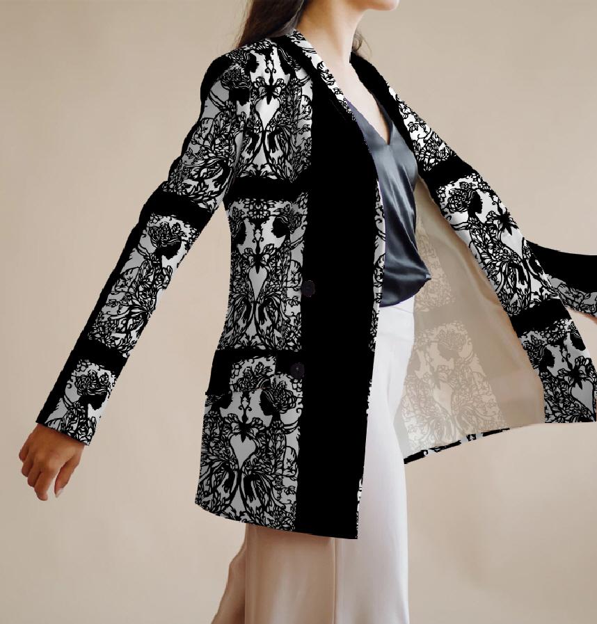 ファッションデザイナー、石原千穂子と、切り絵作家MiHoのコラボ作。フランス、パリにて、ファッションショーを行い、そちらで、旗ドレスとして制作し、発表された生地です。緑の冠をいただく、二人の森の女王。自然の均衡を保ち、その自然の美しさを維持するため、森の全てに心を注ぐ二人の女王。そんなイメージで制作した切り絵を、原画とし制作した生地です。皆様にお手に取っていただき、素敵な作品にしていただければ幸いです。