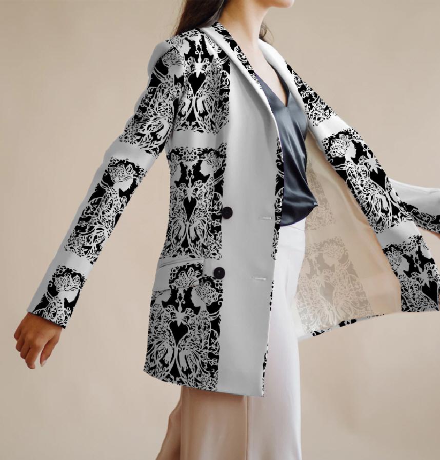 ファッションデザイナー、石原千穂子と、切り絵作家MiHoのコラボ作。フランス、パリにて、ファッションショーを行い、