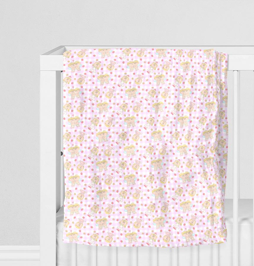 可愛い女の子、赤ちゃん、天使ちゃんといちご柄のデザインです。