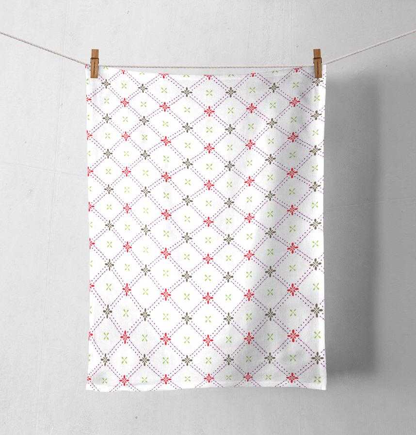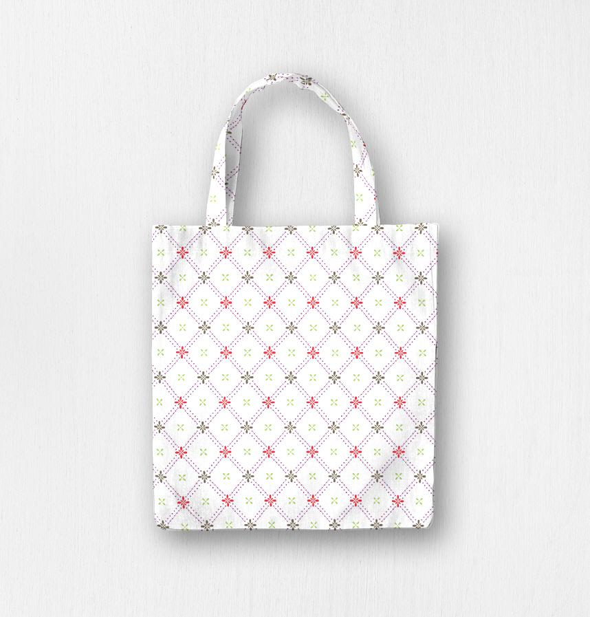 コットンリネンに合いそうなシンプルなダイヤ柄と花モチーフ