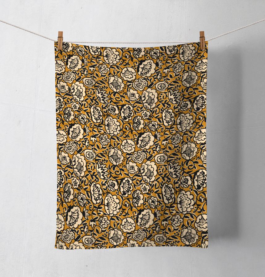 パターン説明 民族っぽい雰囲気のある手描きの花柄模様。