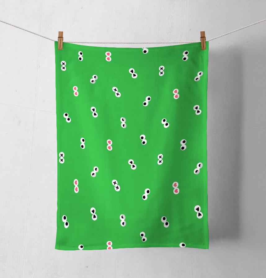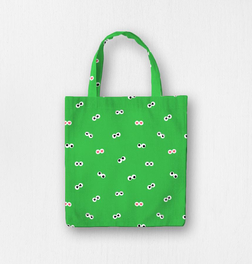 色んな表情の目玉をちりばめた、ポップでユニークなデザインです。