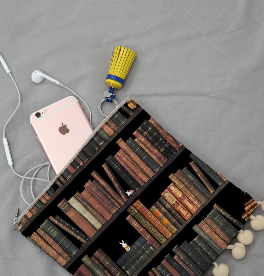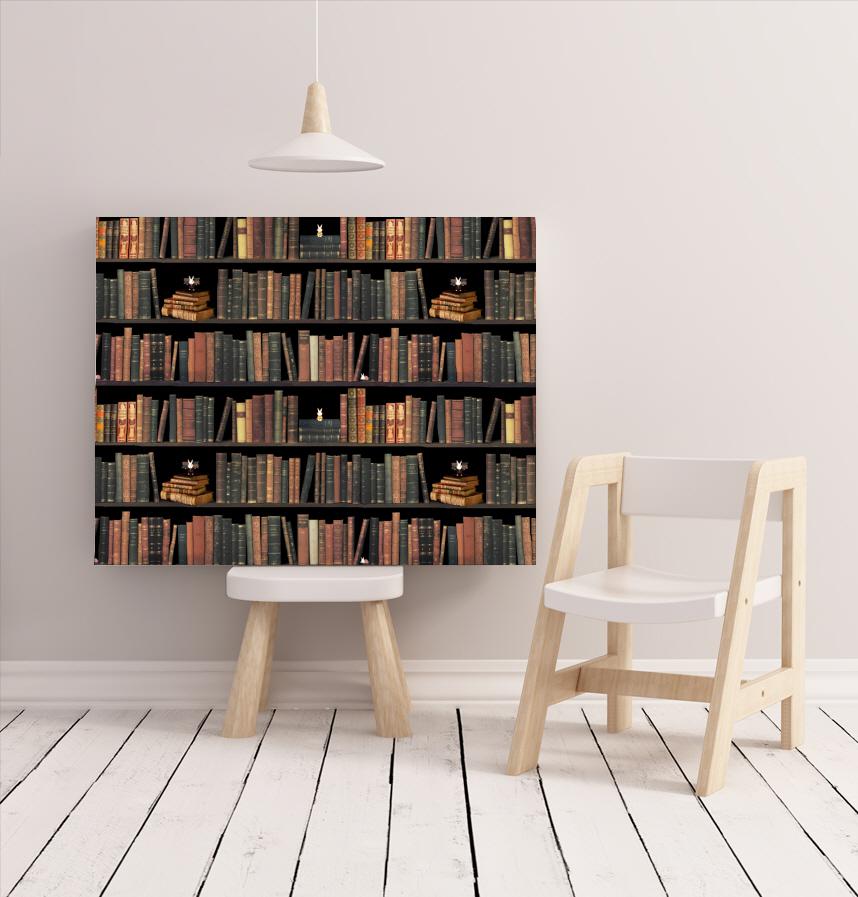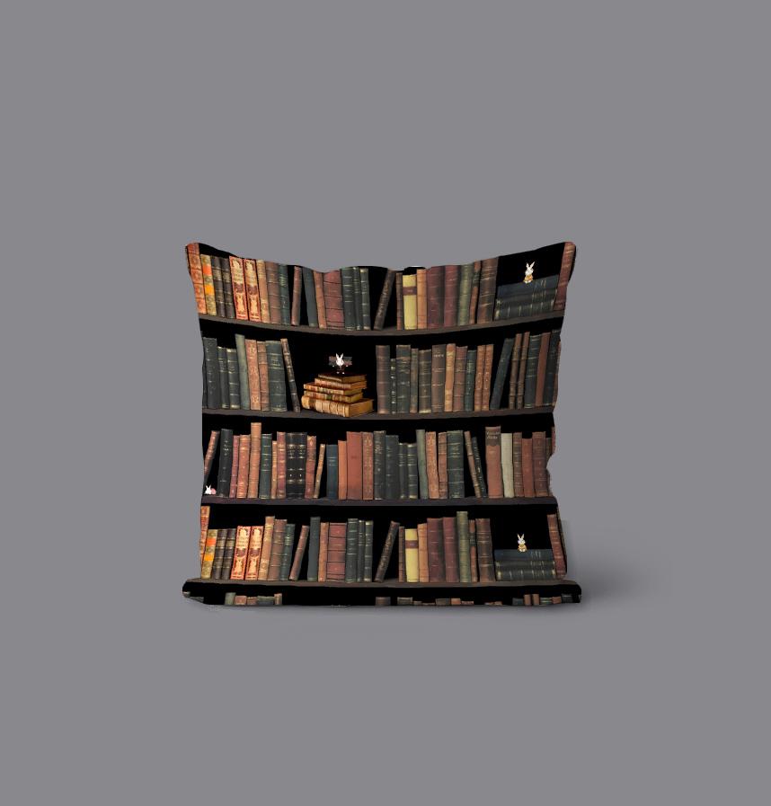 古書が並ぶ本棚に居るうさぎさん達を、落ち着いた雰囲気を意識してデザインしました。