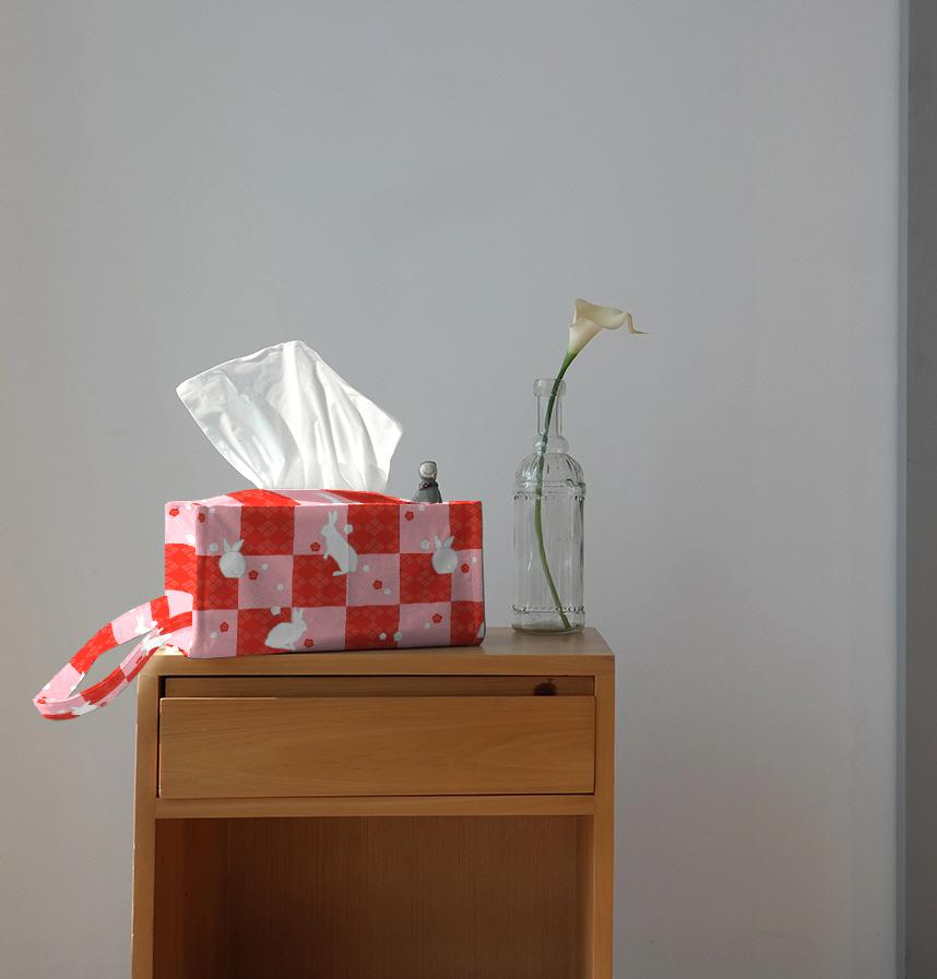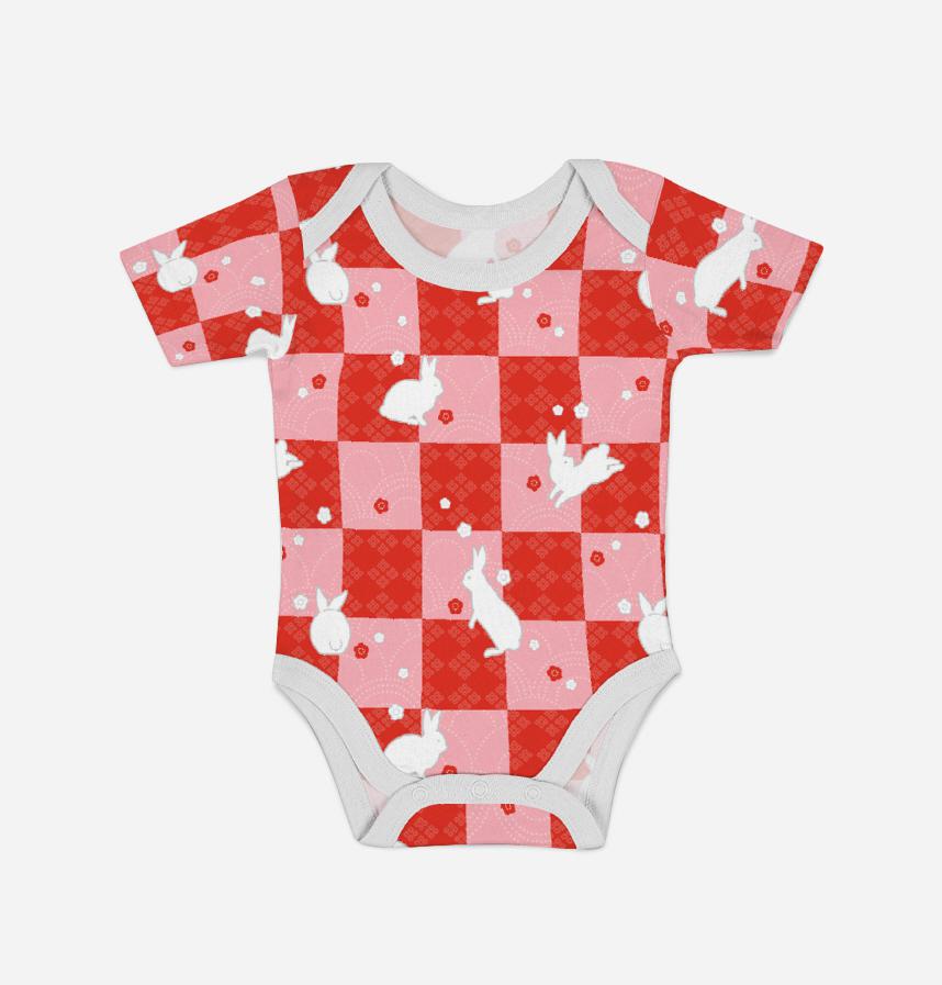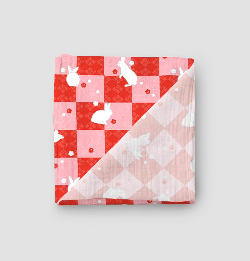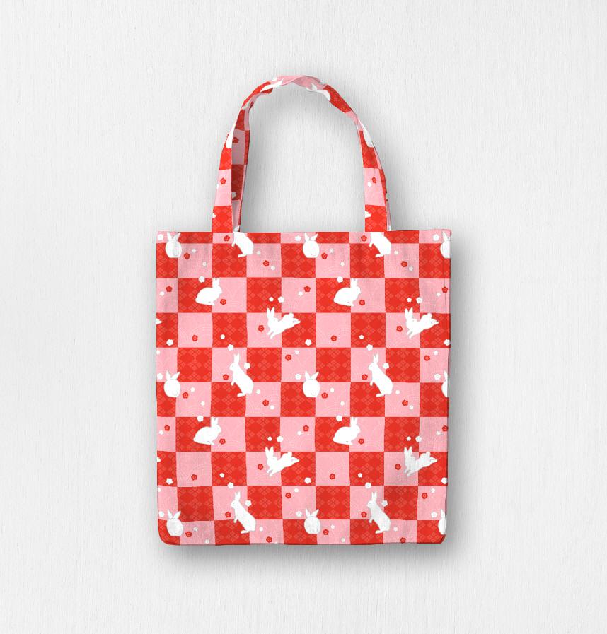 色んなポーズのうさぎを散りばめた、キュートな和柄デザイン。