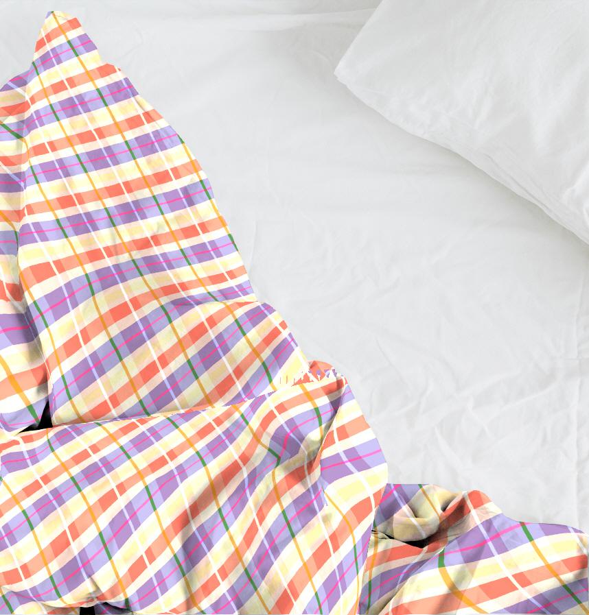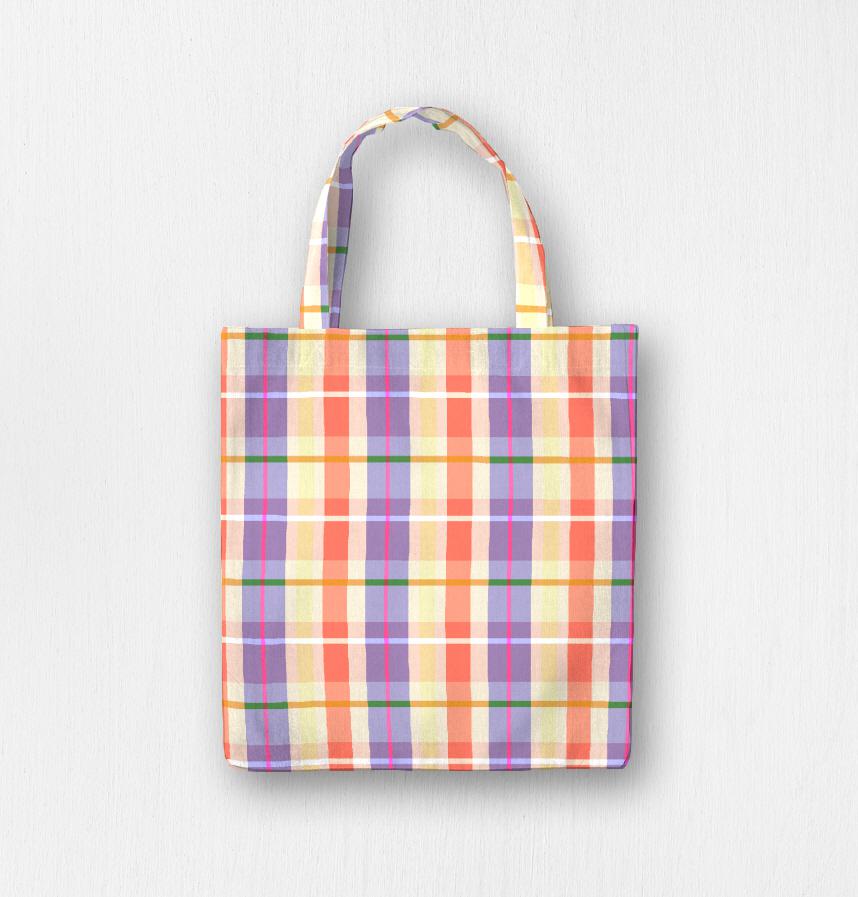 パターン説明 マルチカラーが可愛いタータンチェック。パープルオレンジ。