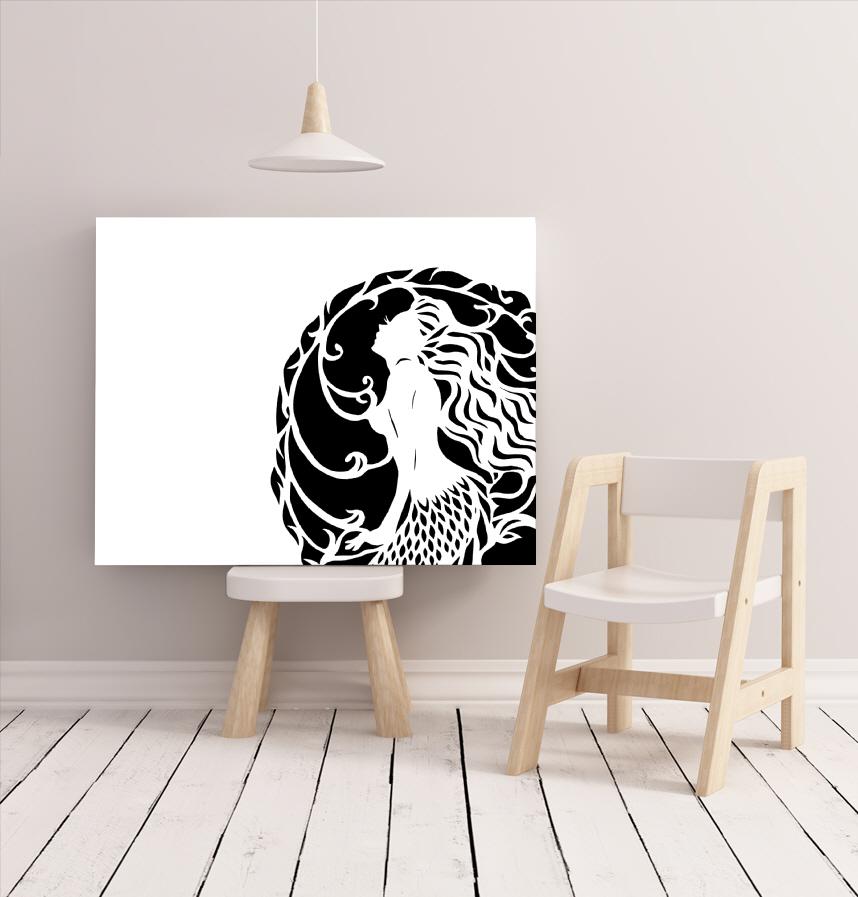 切り絵は、恋した王子様を想いながら、海の底で憂いを含みながら過ごす人魚姫。