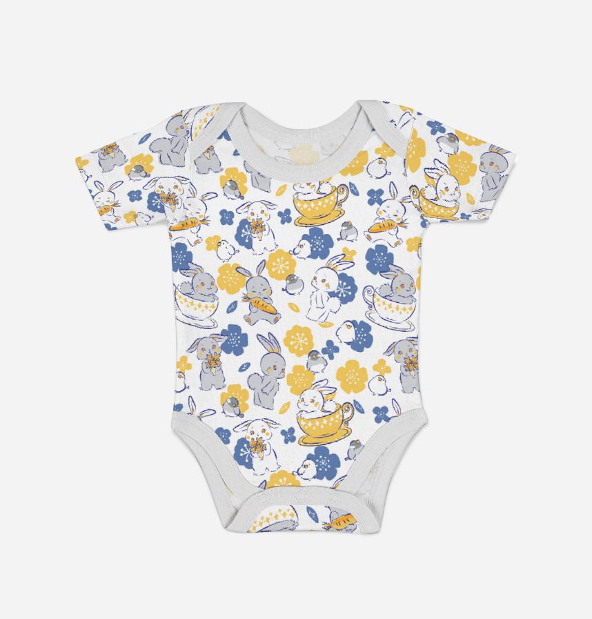 パターン説明 うさぎと文鳥がいっぱいの、北欧柄デザイン生地です。