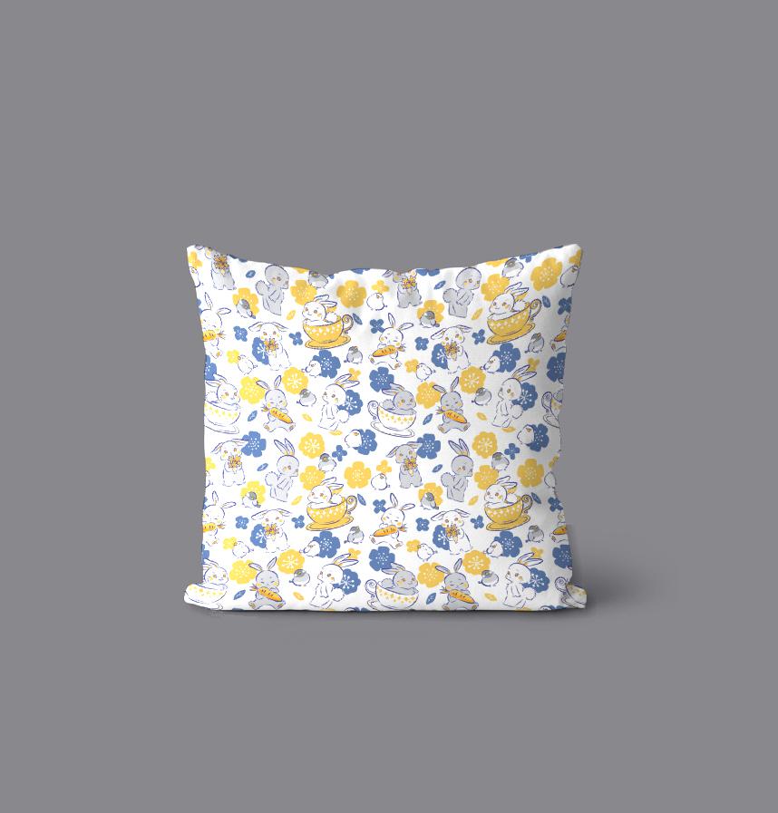 パターン名 うさぎと文鳥 北欧柄 (20×20cm) ブルー×オレンジ