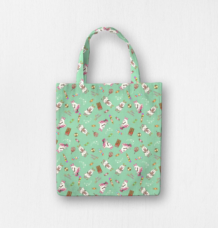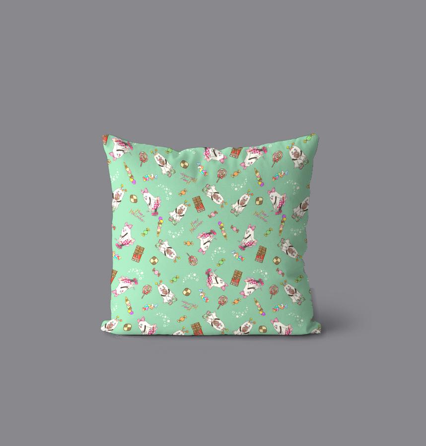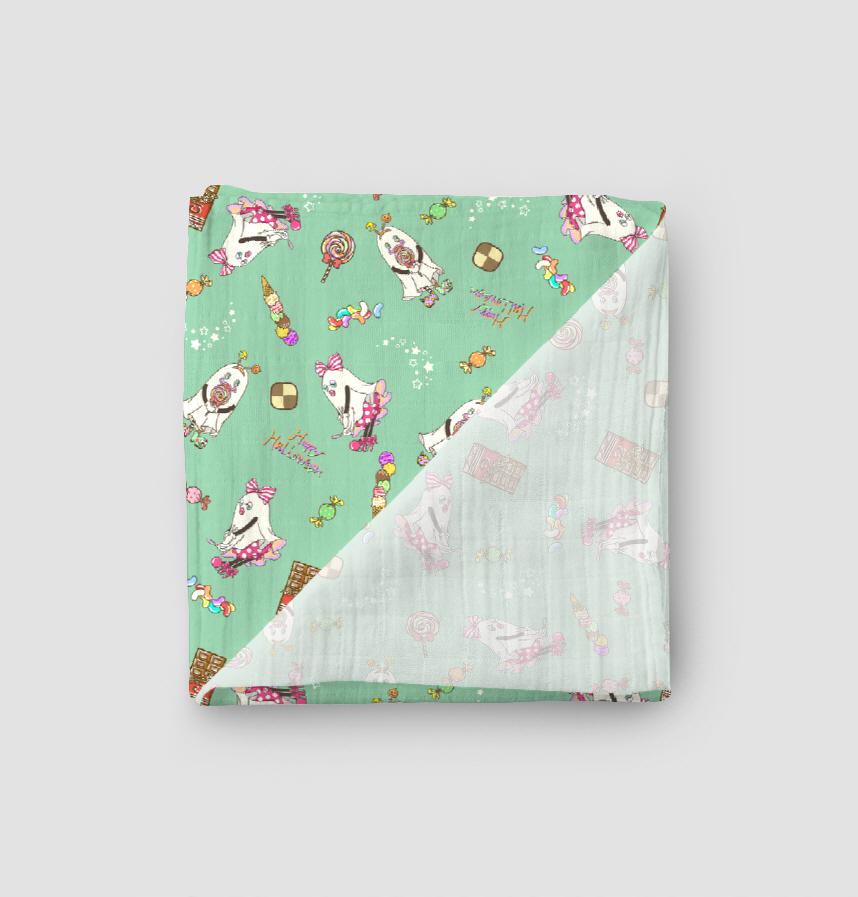 カラフルでポップなデザインですが、ベースのグリーンはミントのようなかわいらしい緑になっています。おうちハロウィンを盛り上げるアイテムの一つになれたら嬉しいです。