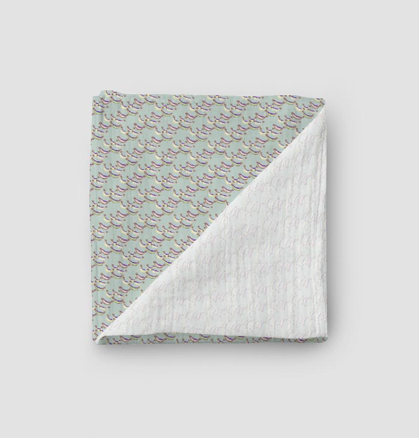 落ち着いたキレイなミント色の地色に、ニュアンスカラーの舟形フレーク模様。