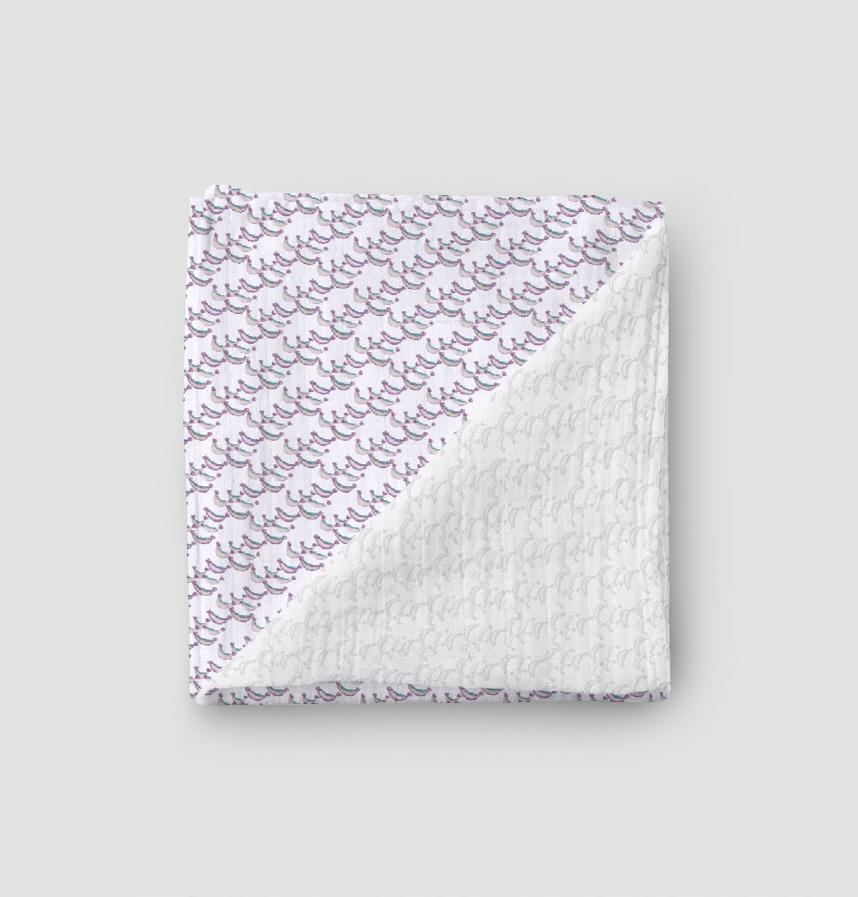白地に、モーブ系くすみカラーの舟形フレーク模様。