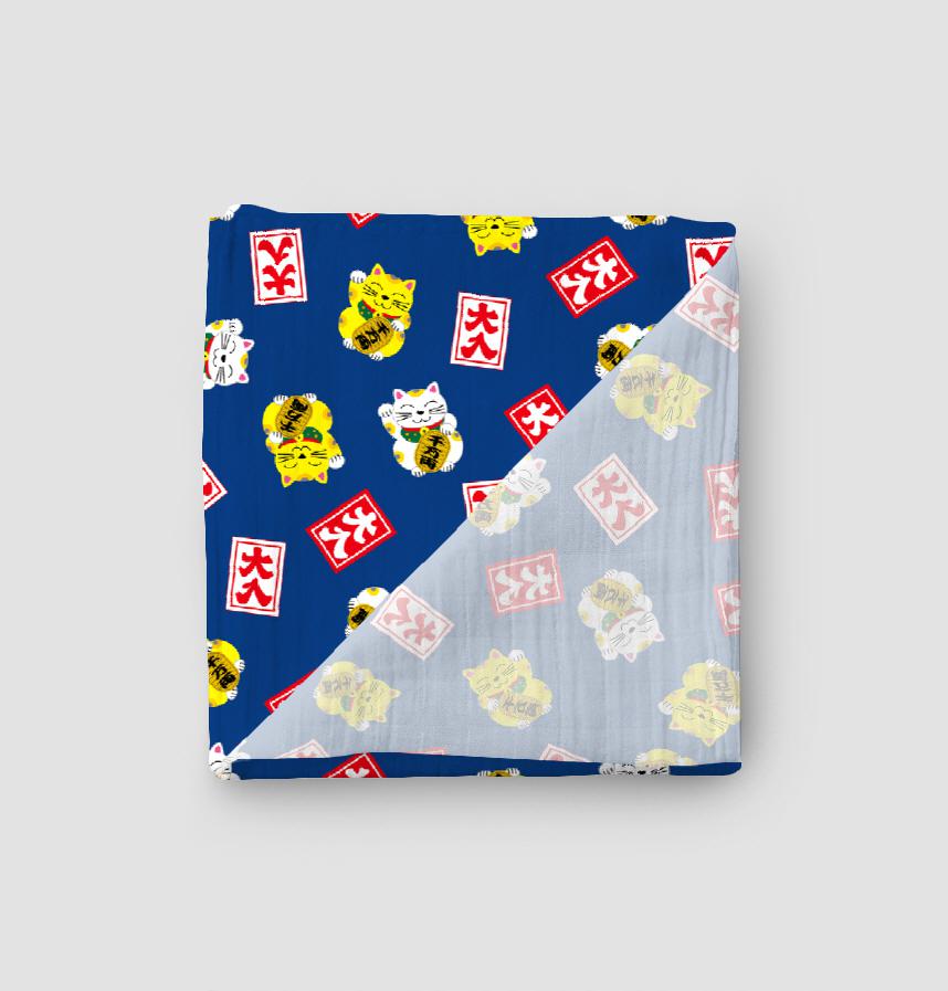 パターン名 招き猫と大入袋(紺)