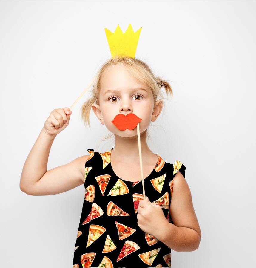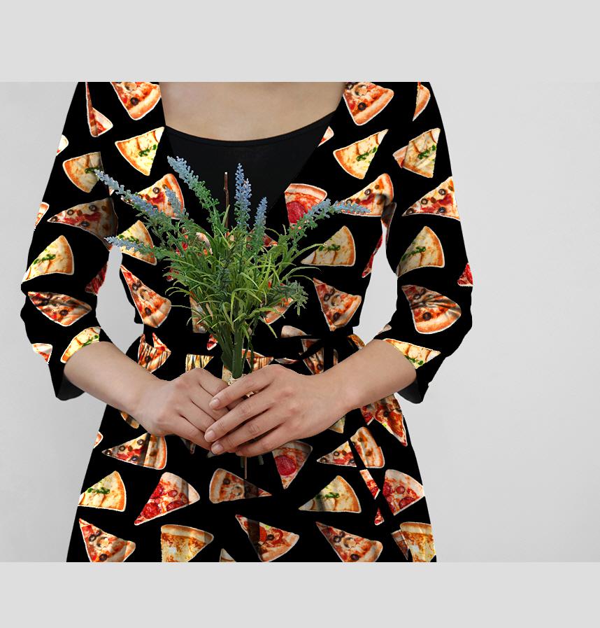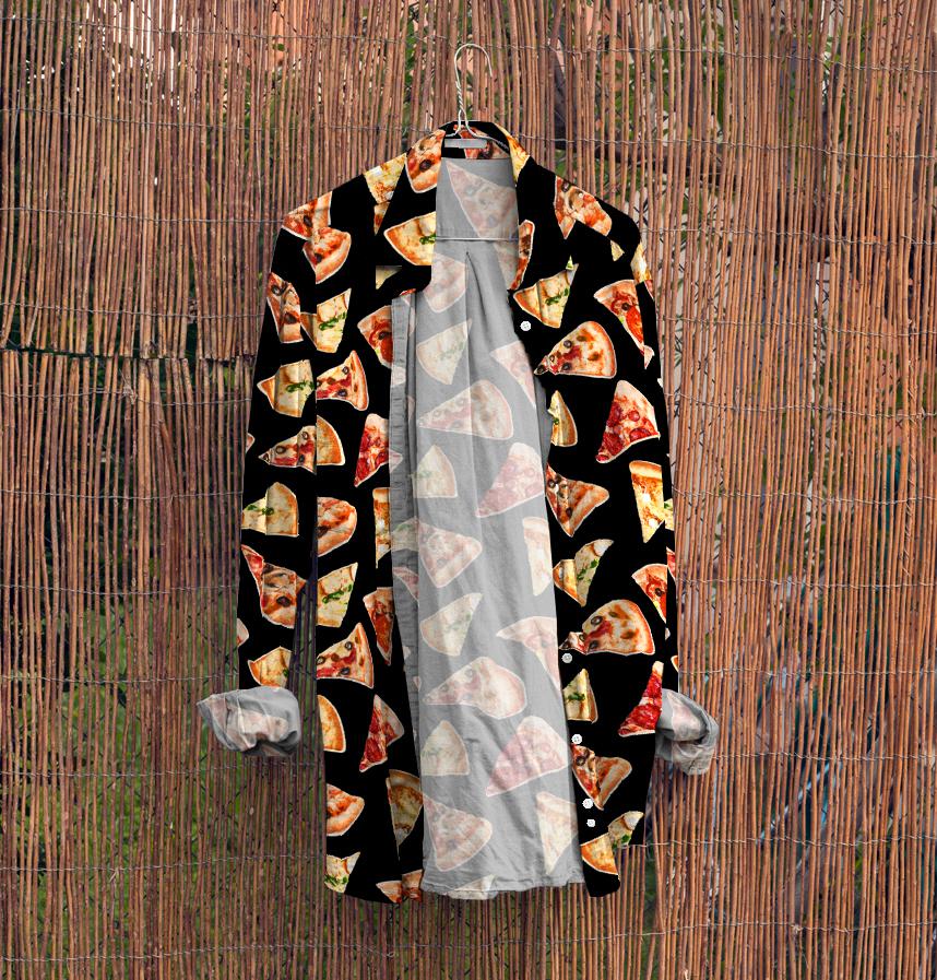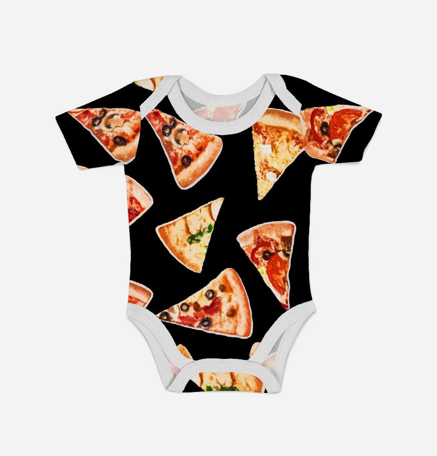 美味しそうなピザのイラストが配置された、ポップでアートなデザインです。