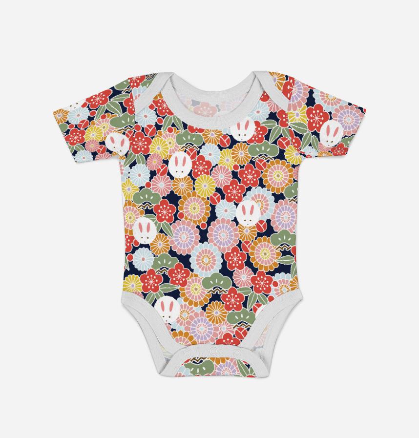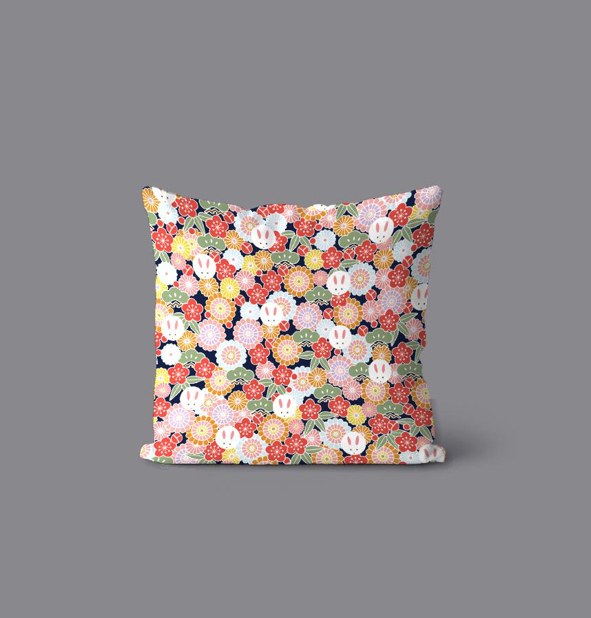 和柄-菊とうさぎのパターン