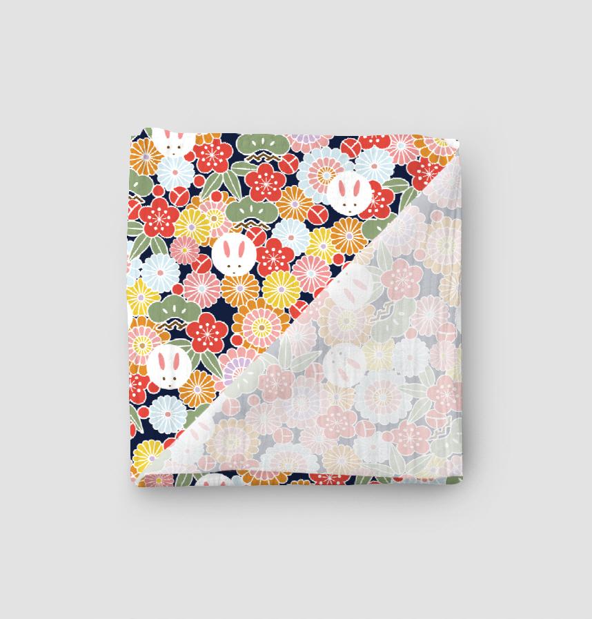 パターン名 和柄-菊とうさぎのパターン-紺
