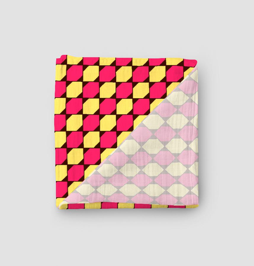 黄色とピンクと茶色のカラーにそろばんの形の配置を組み合わせました♬