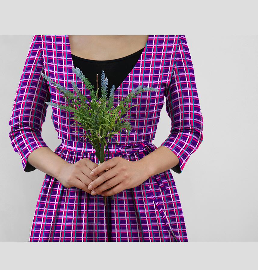 パターン説明 濃い紫をベースに白、ホットピンク、藤色、浅葱色でチェック柄にしました