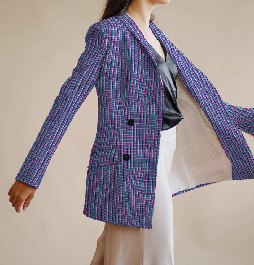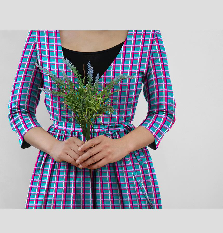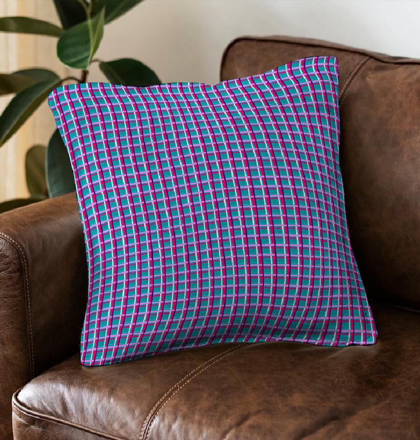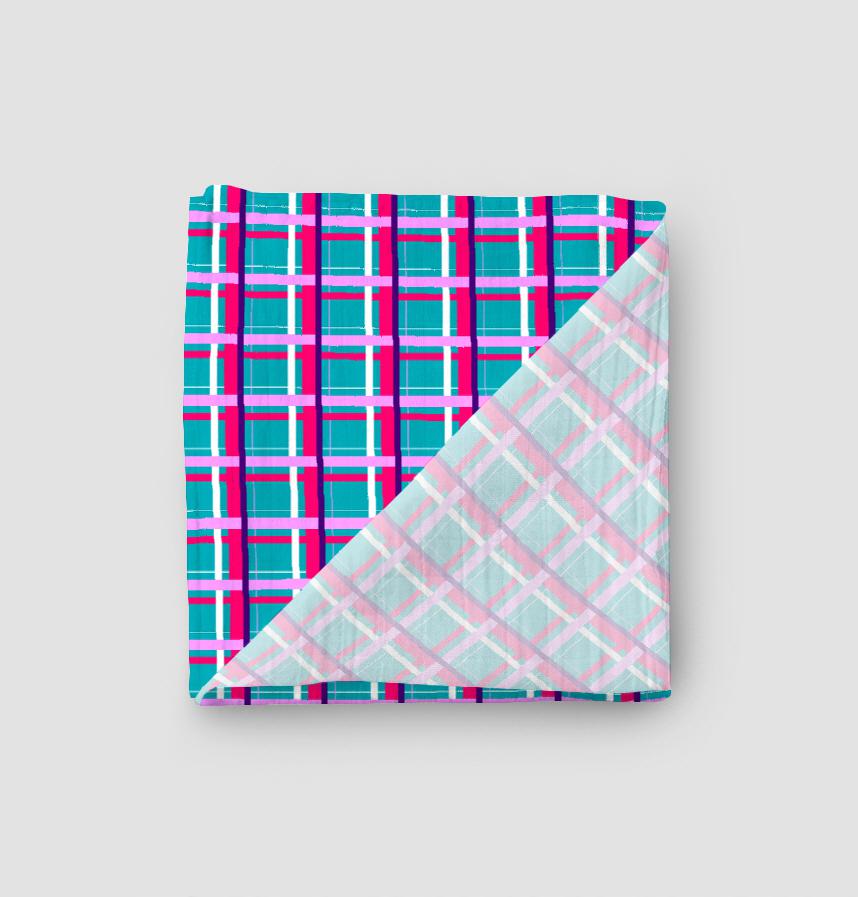 パターン説明 浅葱色をベースに白、ホットピンク、藤色、濃い紫でチェック柄にしました