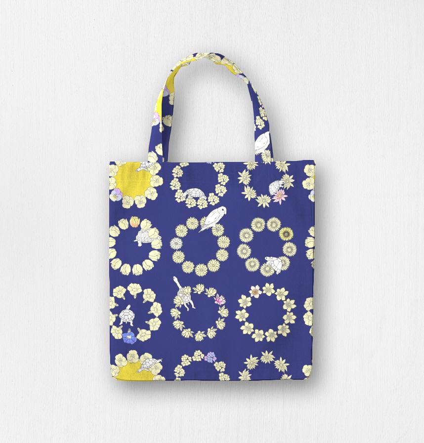 パターン説明 お花のサークルで遊ぶ亀さん。