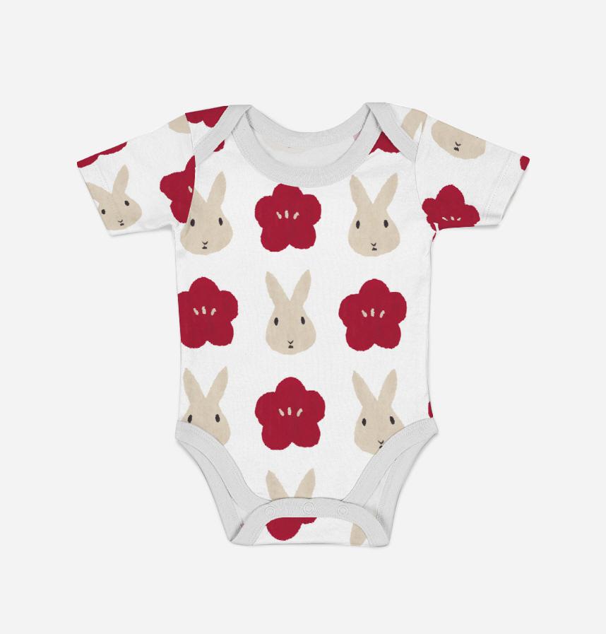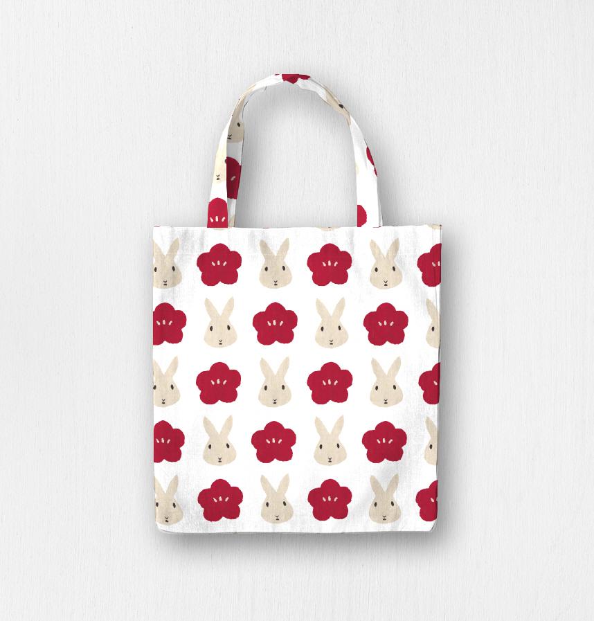 パターン説明 手書き風のシンプルなうさぎと梅です。