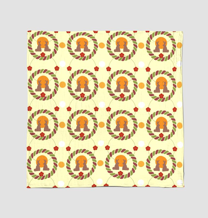 モチーフのしめ縄の大きさは約20cmなので比較的大きめの柄になります