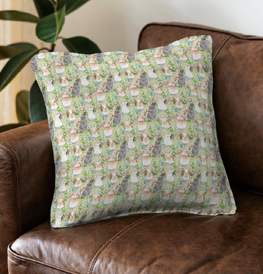 パンジーのお花畑とかわいいうさぎたちのシームレスパターンイラスト
