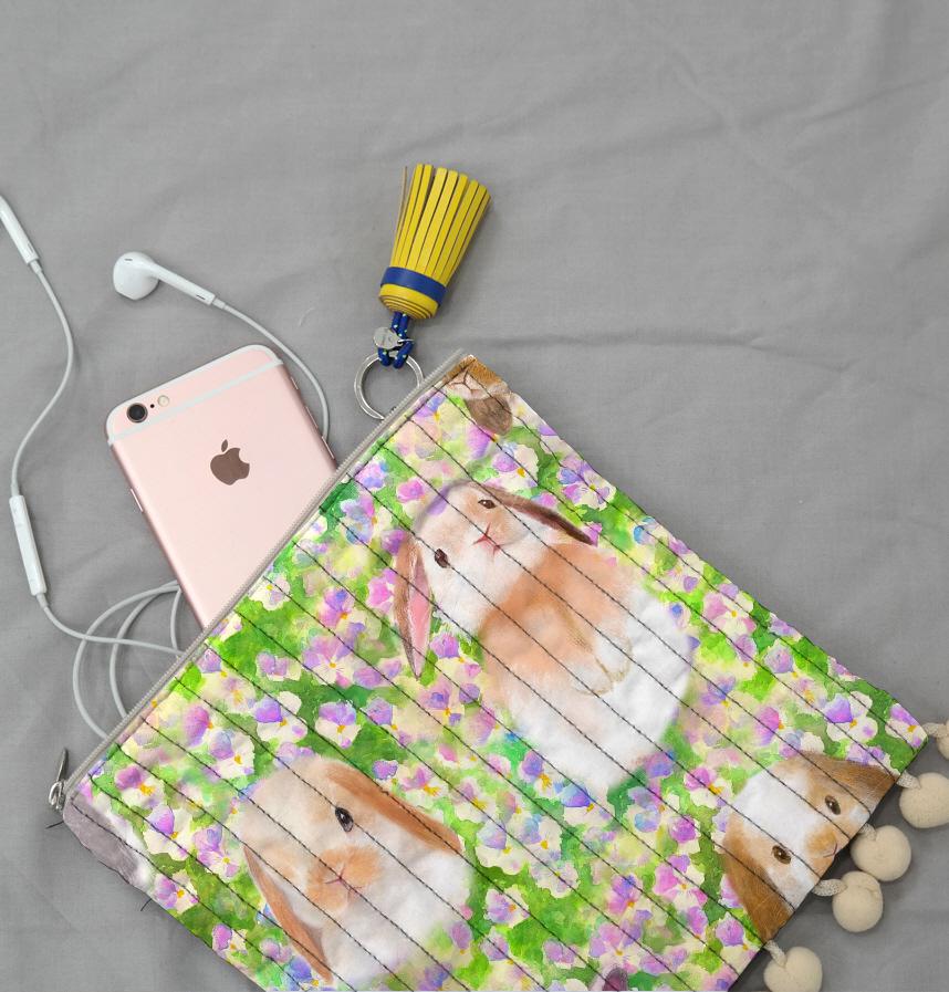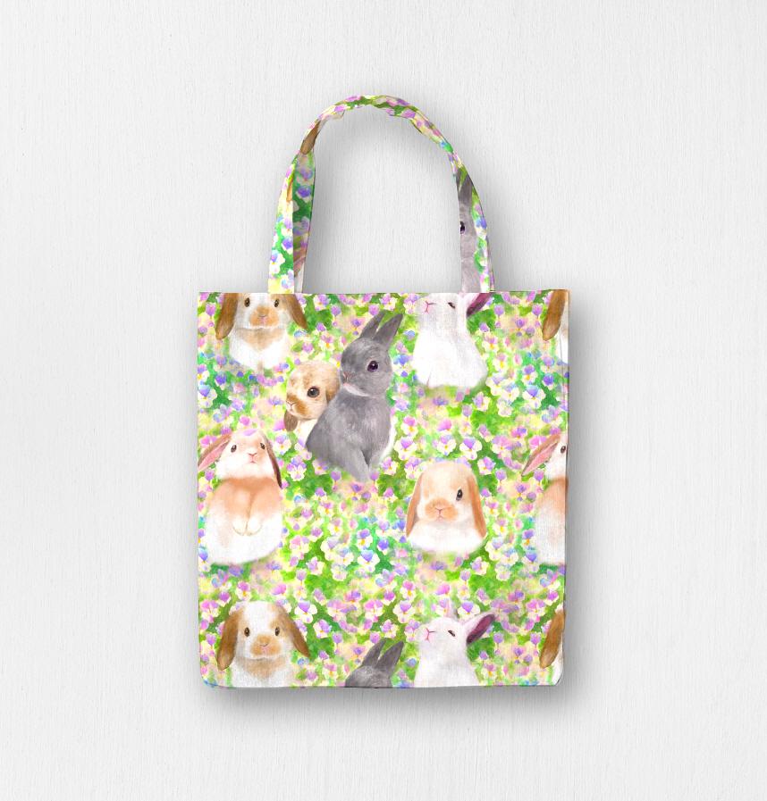 パンジーのお花畑とかわいいうさぎたちのシームレスパターンイラスト